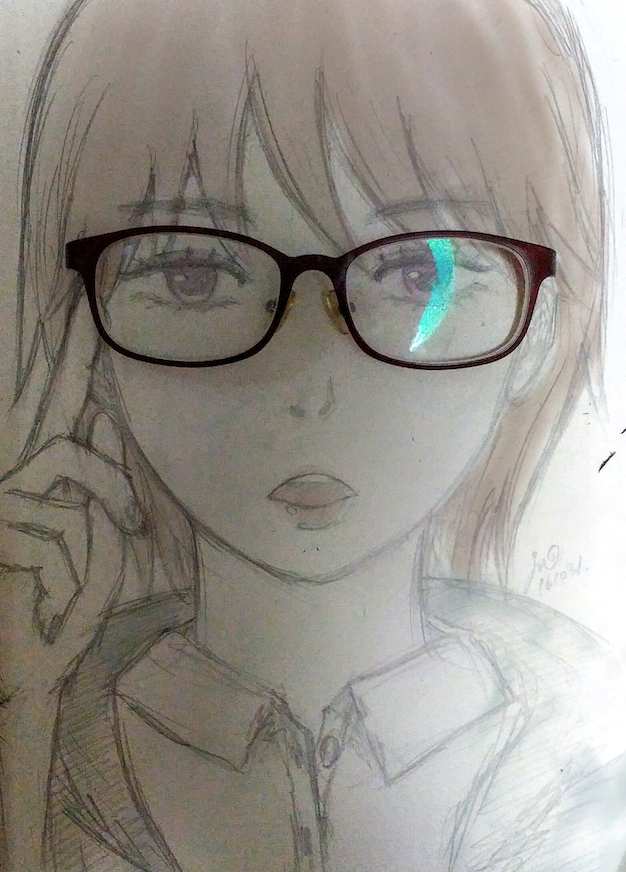 안경 벗어놓고 소파에서 뒹굴거리다 두 안경 다리를 박살내고 말았다. 살 때 안경 다리가 탄성이 있어 부러지지 않는다고 했는데 대신 테 부분이 부러지더라. 그려놓고 잊어버리고 있었는데 갑자기 트위터에서 2D 캐릭터에 실제 안경을 씌우는 놀이가 유행하더라.