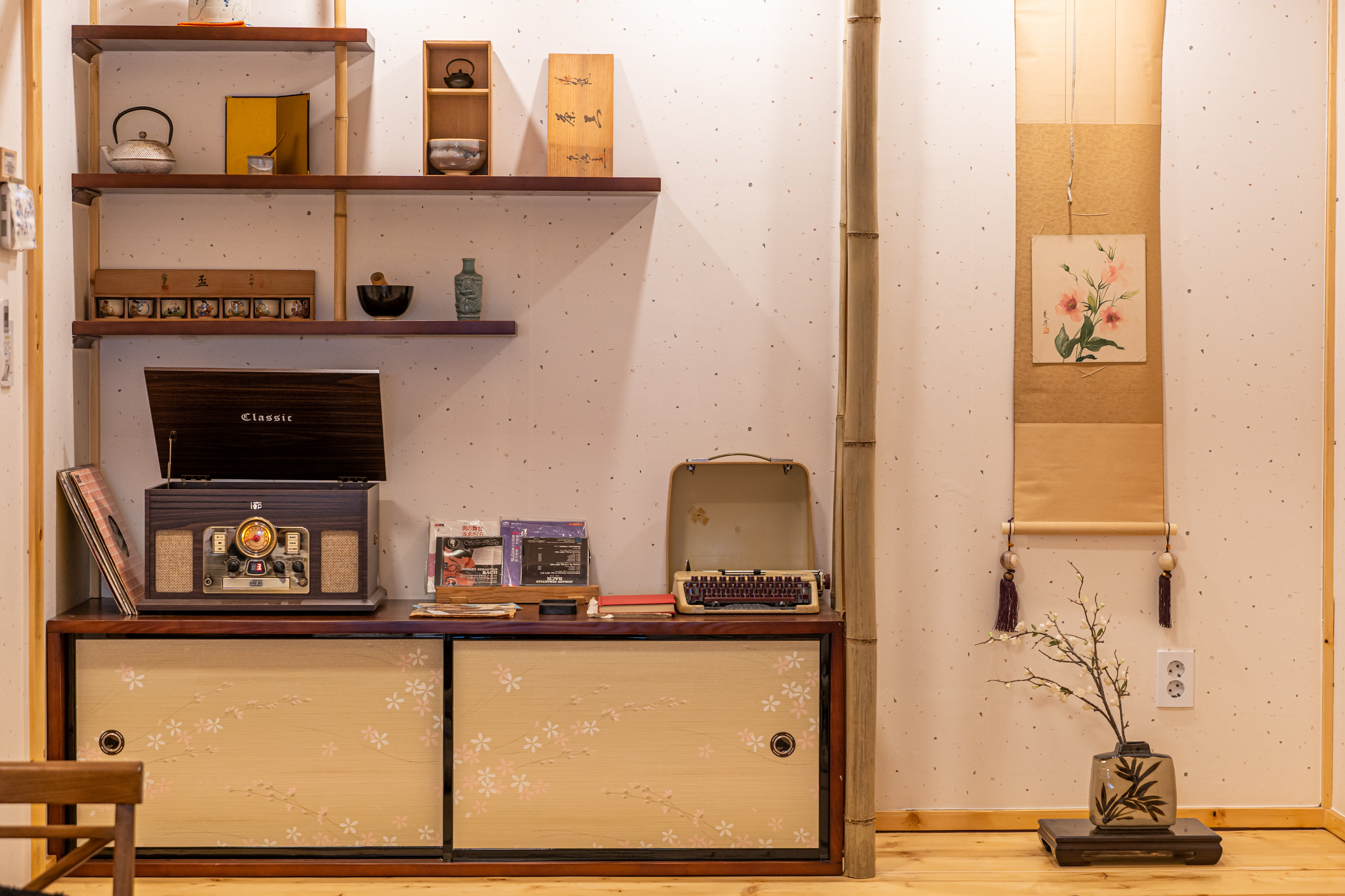 료칸 방 내부는 큼지막했고 2층까지 있었다. 오래된 소품이 방 곳곳에 준비되어 있었고 말로만 듣던 축음기가 비치되어 있어 원하는 노래를 들어볼 수 있다. 내가 아는 아티스트는 해바라기, 015B, ABBA 정도였다. 바이닐을 실제로 듣는 것은 처음인데 생각했던 것보다 음질이 괜찮았다.