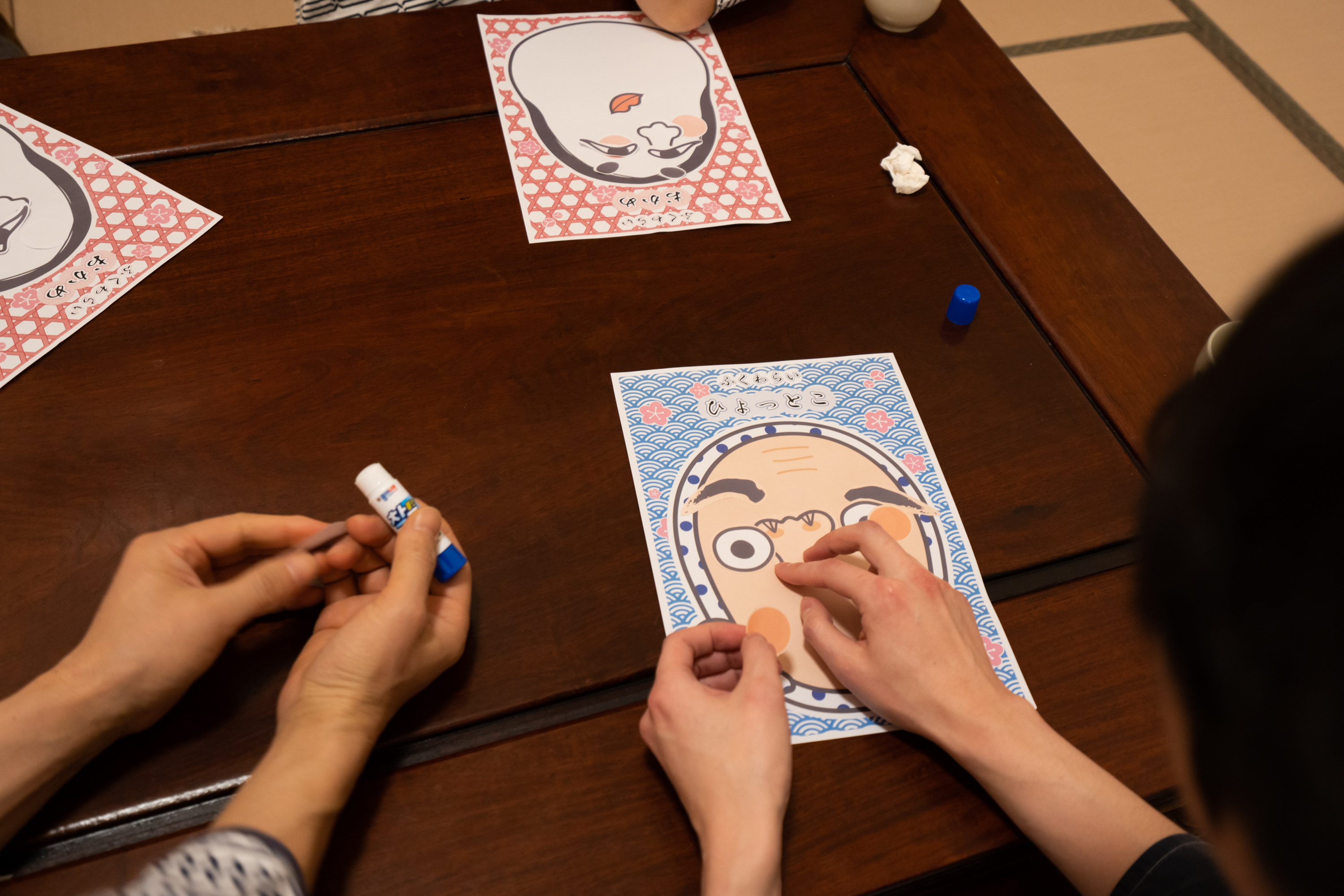 료칸에서 설을 맞이해 후쿠와라이를 준비해 줘서 해 봤다. 하는 동안 다들 눈물까지 흘리며 웃었고 내가 만든 것이 가장 엉망진창이었다. 코는 거꾸로 붙고 볼 화장이 눈을 덮었다. 다른 가족들도 재밌는 얼굴이 나오긴 했지만 대체로 얼굴의 형상은 유지한 편이었다. 내가 좀 대충 한 감이 있긴 했지만 너무들 잘하려고 한다니까.