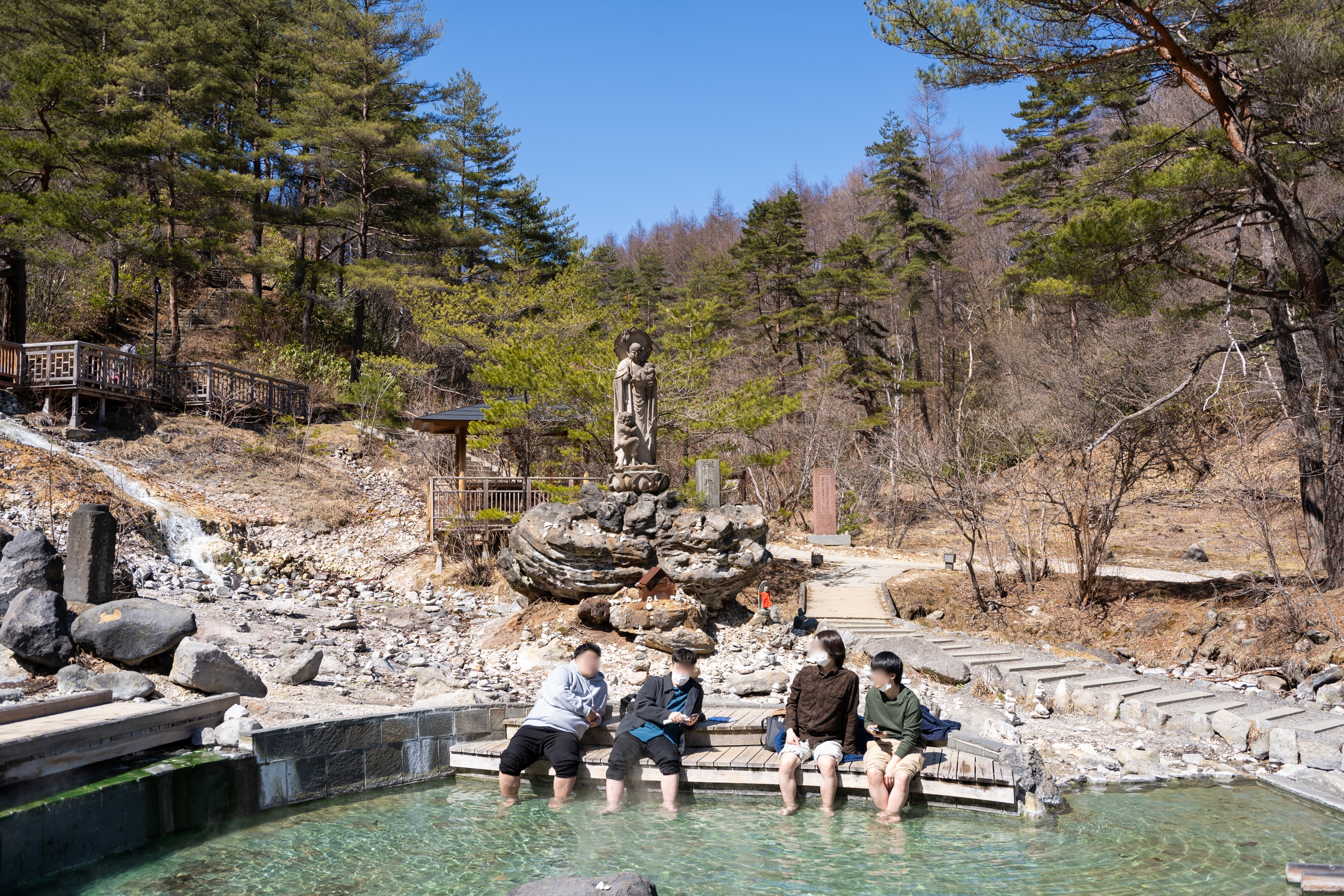사이노카와라 공원 길을 따라 올라가자 온천수가 계곡물처럼 흐르고 있는 광경이 신기했다. 족욕탕이 여기저기 있었지만 수건이 없어 손으로 잠시 온기를 느끼는 데서 만족하기로 했다.