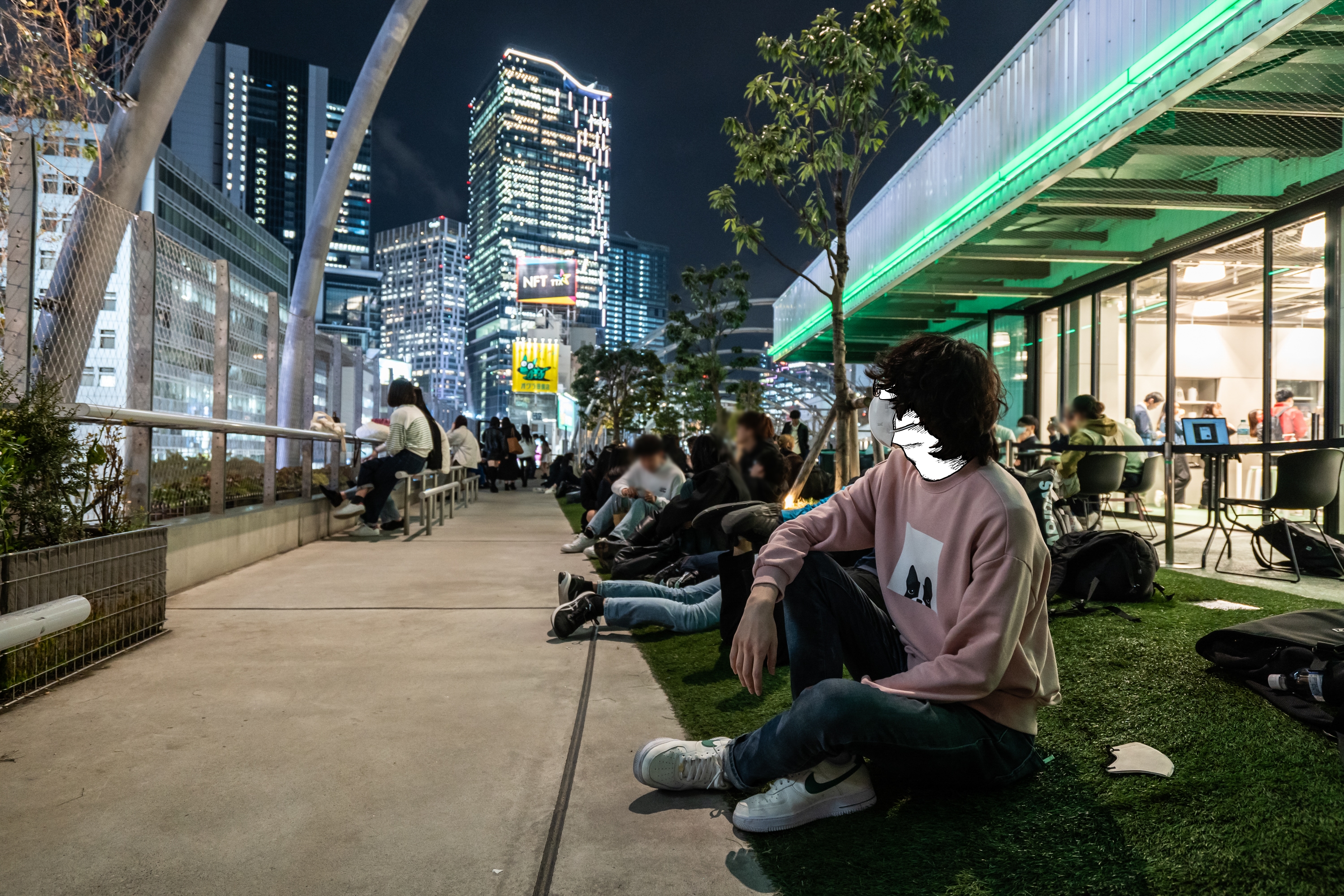 짐을 내려놓고 동생 친구의 선물을 사기 위해 스타벅스 미야시타 공원점으로 갔다. 난 굿즈에는 관심이 없었고 바깥의 인조 잔디에 사람들이 옹기종기 앉거나 엎드려서 노는 모습이 정말 좋아 보였다.