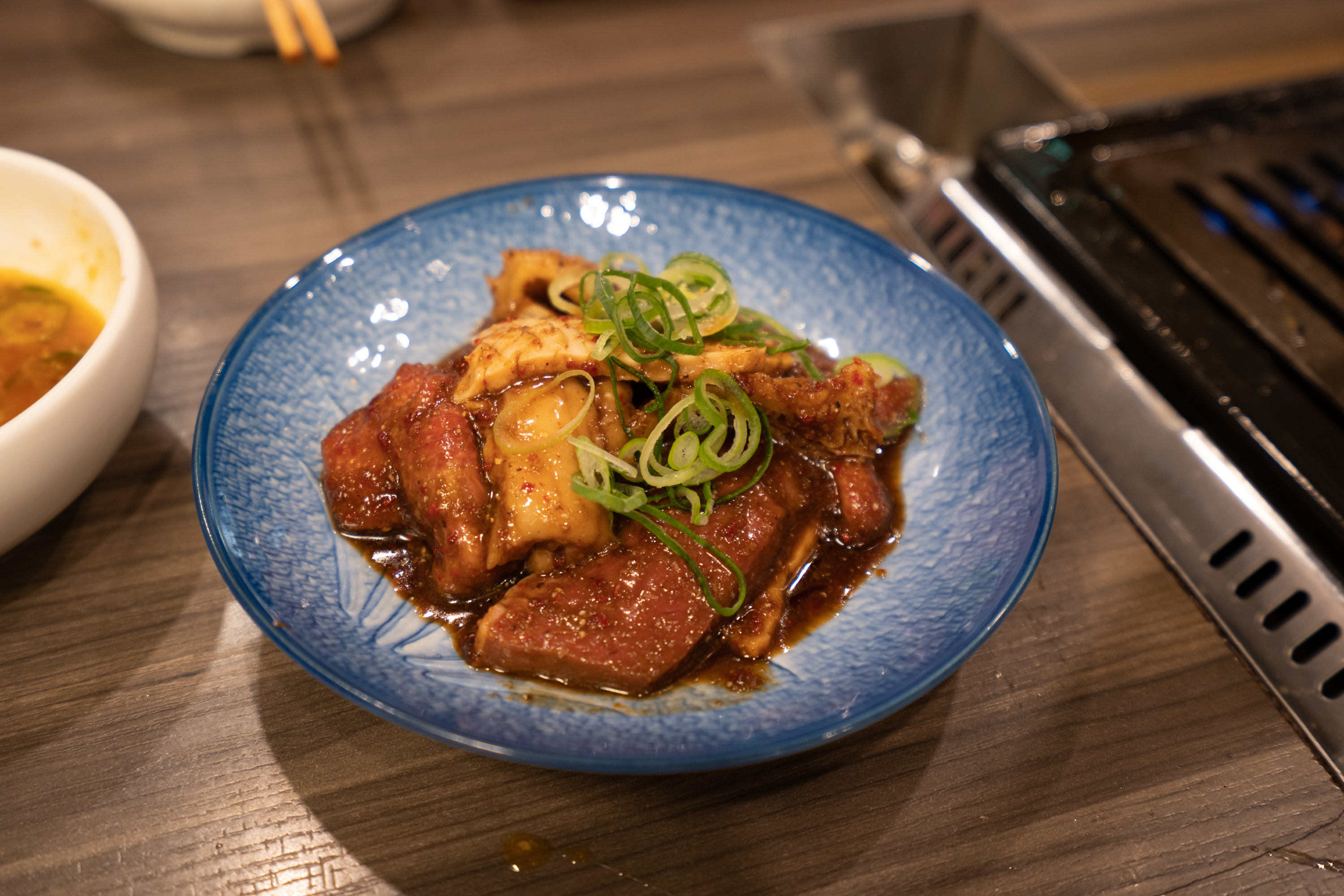 동생이 야키니쿠를 먹고 싶다고 해서 이 시간에 영업하는 곳 중 적당한 곳을 찾았다. 리뷰를 보니 생각보다 혐한을 하는 곳이 몇 있는 모양이다. 누가 봐도 영등포에 있을 법한 한식당을 지나쳐 찾아간 고베 야키니쿠 칸테키는 자리가 꽉 찼다고. 그런데 친절하게도 직원 한 분이 나와 손수 분점으로 안내해 주셨다. 배가 고프지 않다고 생각했는데 고기 모둠 세트 2인분과 우설을 끝까지 맛있게 먹을 수 있었다. 우설부터 시작해서 고기가 모두 부드러웠고, 내장도 간이 강하게 되어 있어 거부감 없이 들어갔다.