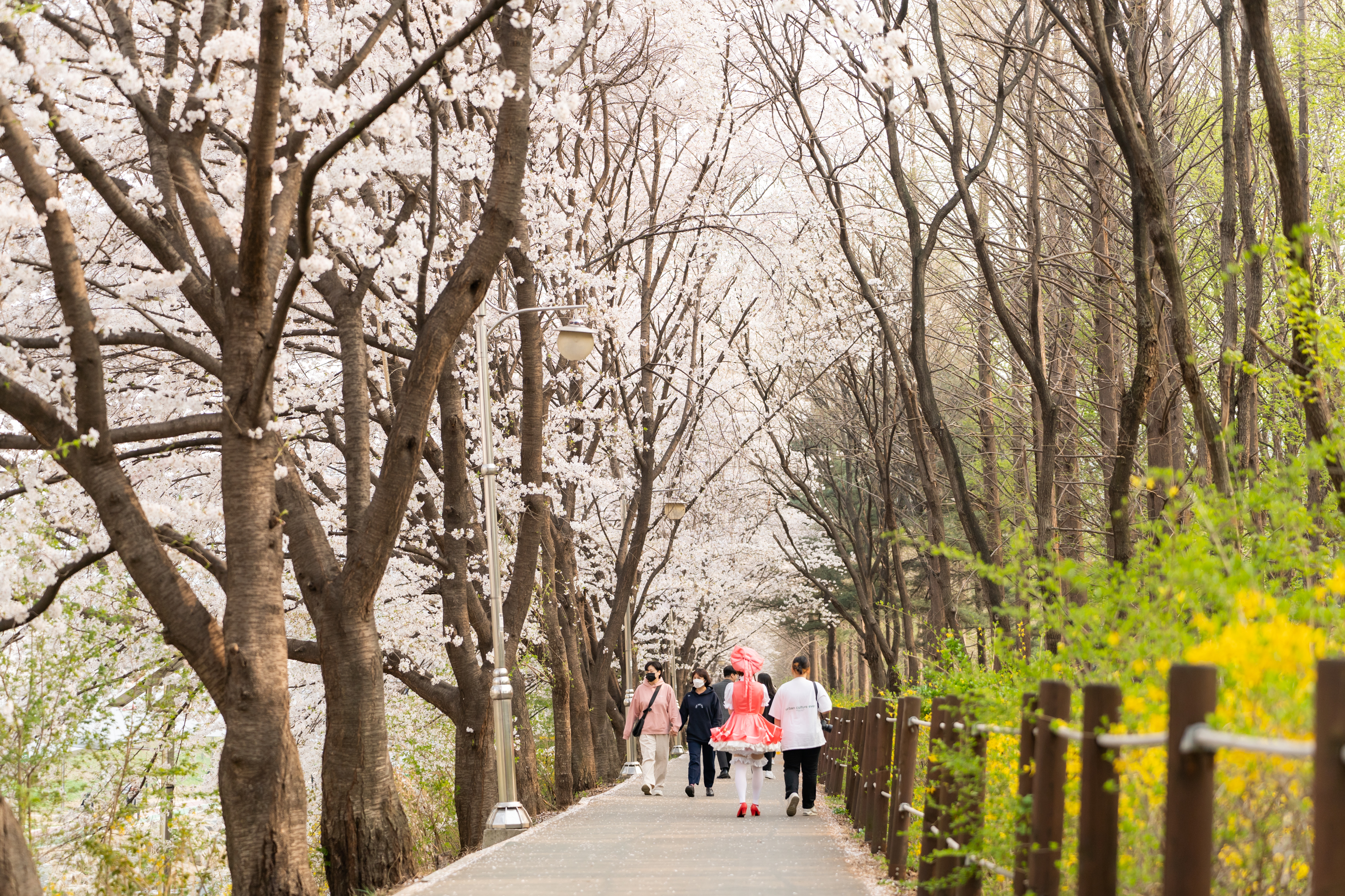 양재천은 약간 애매했다. 공사 때문인지 원래 그런 건지 여기저기 황색 모래가 드러나 있었고 너비에 비해 벚꽃의 밀도가 낮아 사진을 찍을 만한 구도가 잘 나오지 않았다. 하지만 양재 시민의 숲을 따라 흐르는 여의천은 꽃이 더 화사하고 예쁘게 펴 있어 사진기를 들이댈 맛이 났다. 그만큼 사람도 많았다. 코스플레이어와 사진사, 구체관절인형을 들고 다니는 사람도 꽤 보였다. 이런 부류의 사람들을 행사장이 아닌 곳에서 보는 것은 처음이라 신기했다.