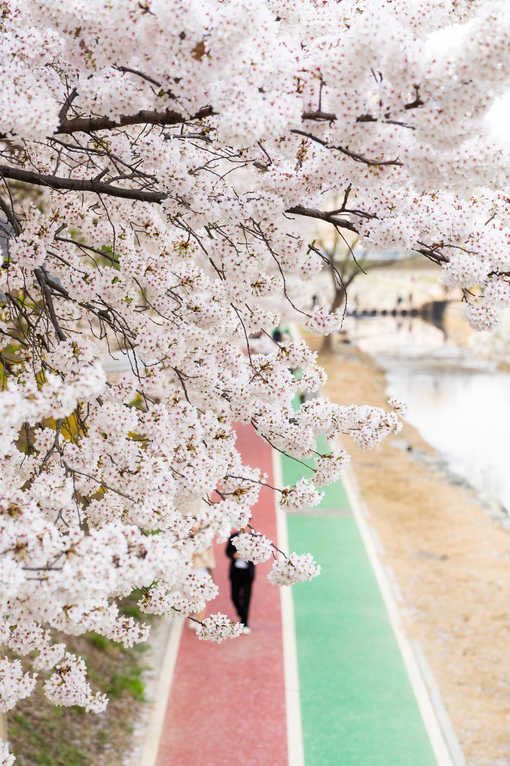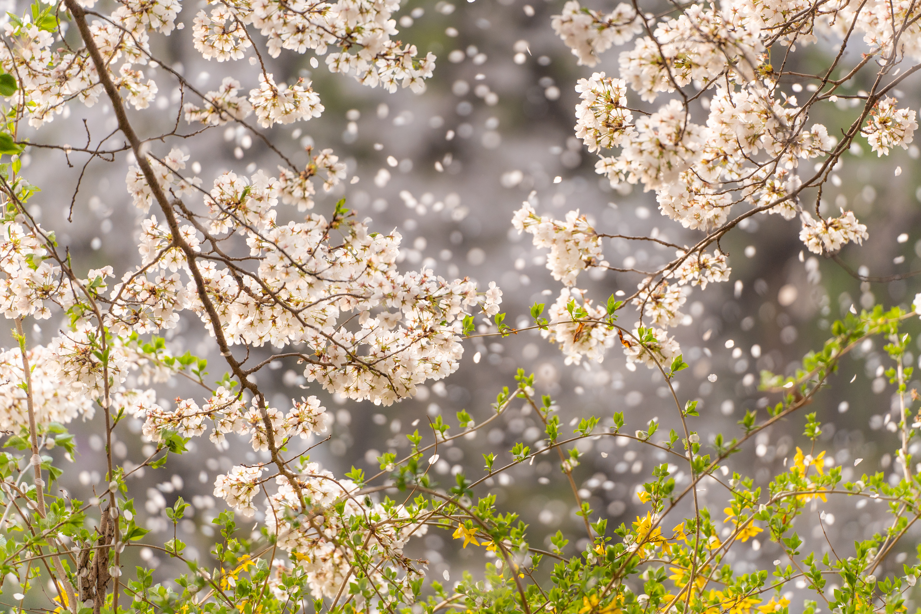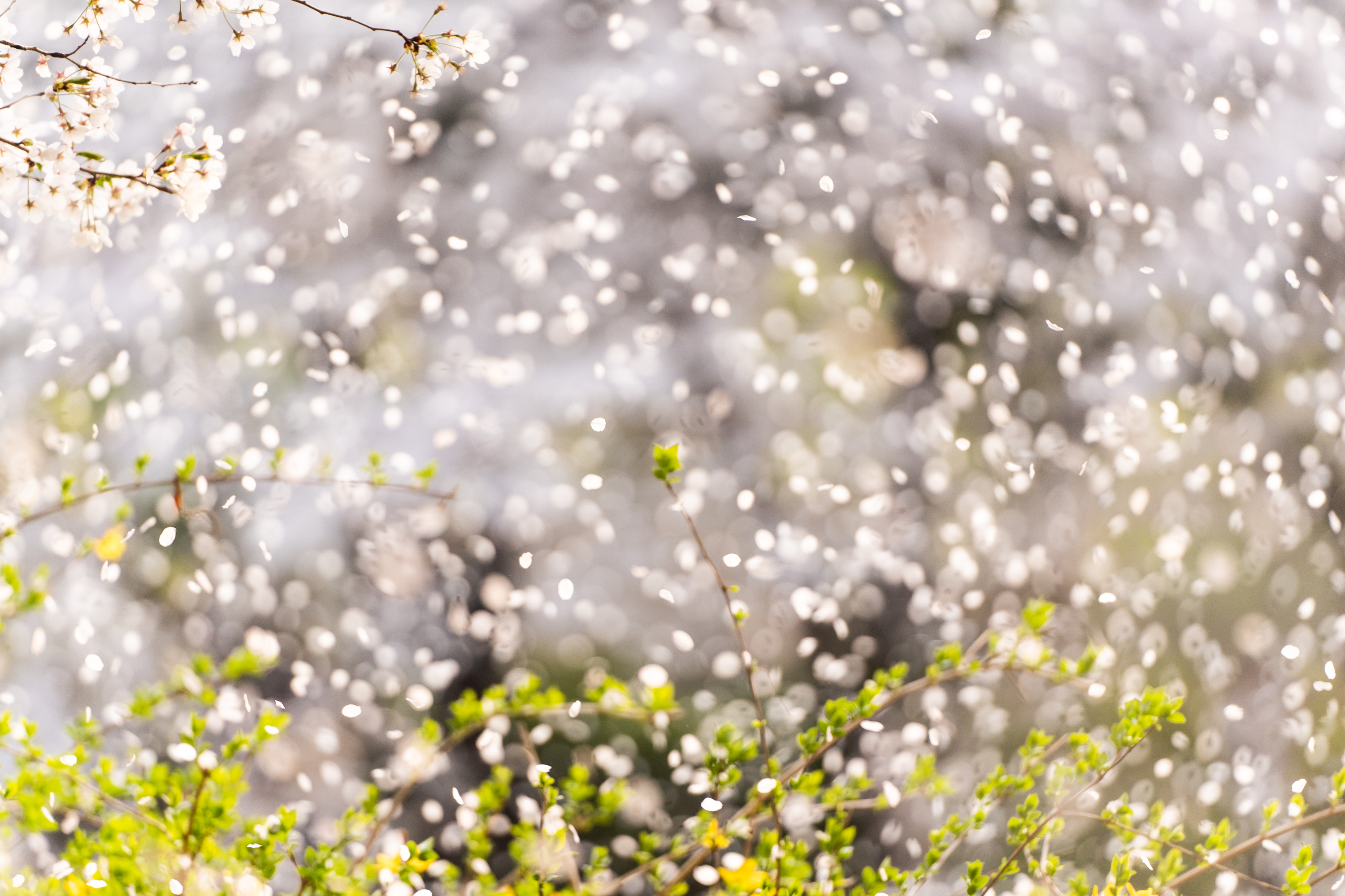 슬슬 돌아갈 생각으로 걷는데 갑자기 바람이 세게 오래 불면서 꽃잎이 일제히 휘날리기 시작했다. 모두가 놀란 표정으로 촬영 버튼을 누르기 시작했다. 나도 이때다 싶어서 연사 모드로 놓고 사진을 몇십 장이고 찍었다. 흩날리는 흰 꽃잎이 프레임을 가득 채워 마치 눈이 내리는 것 같았다.