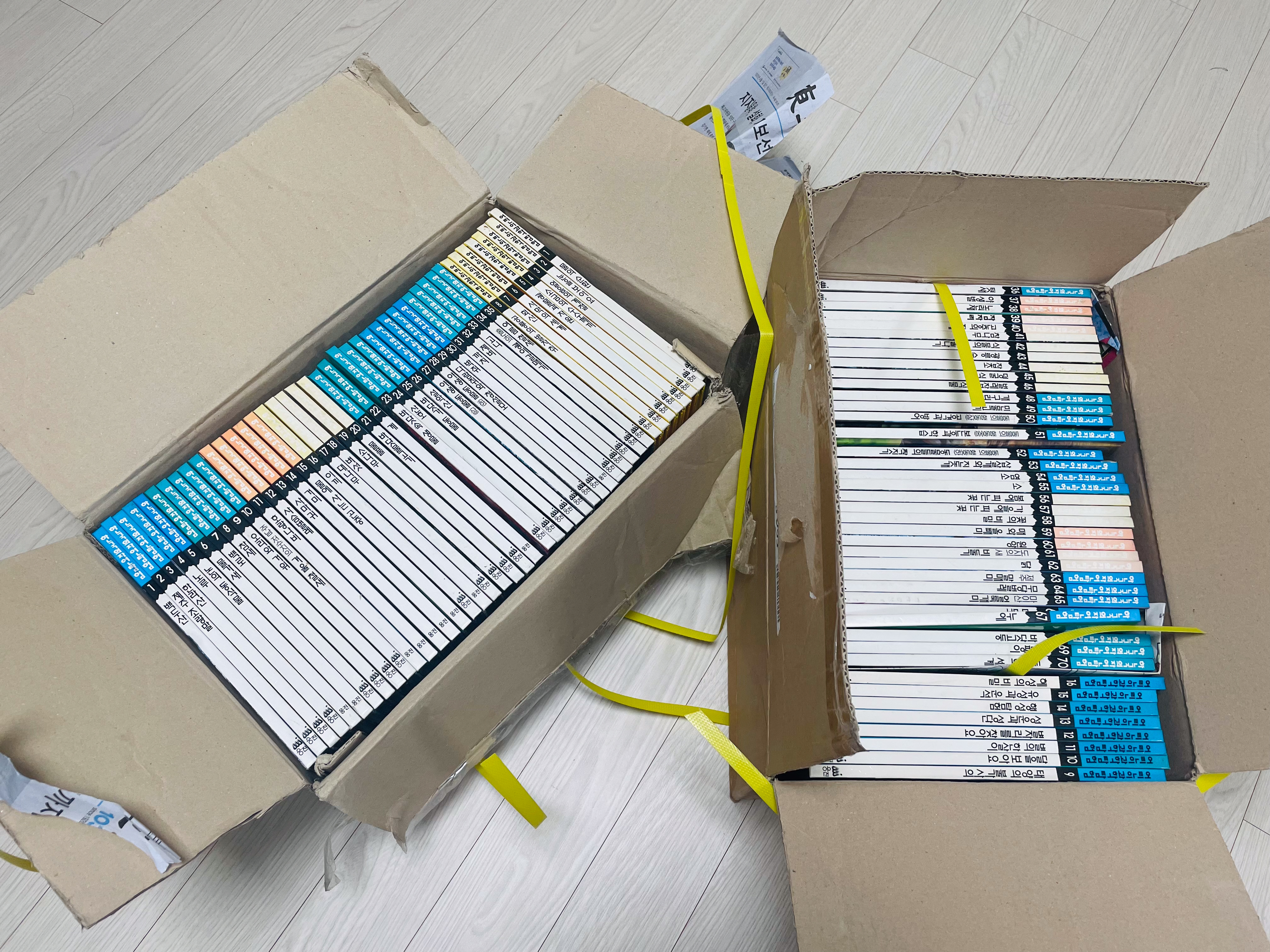 포장을 풀고 책 한 두 권을 펴 보자 오랜만에 친구를 만난 것처럼 반가웠다. 그러나 아무리 한 권 한 권이 얇아도 86권이라는 책의 부피는 생각보다 크다. 이걸 어디다 넣어야 할지 슬슬 고민이 되기 시작했다. 새로 구입한 손님용 매트도 겨우겨우 옷장에 구겨 넣은 참이라 너무 앞뒤 안 보고 샀나 싶었다. 왜 애들용 책을 샀냐는 핀잔을 들을까 봐 자취방으로 배달시킨 건데, 생각을 좀 잘못한 듯싶다.
