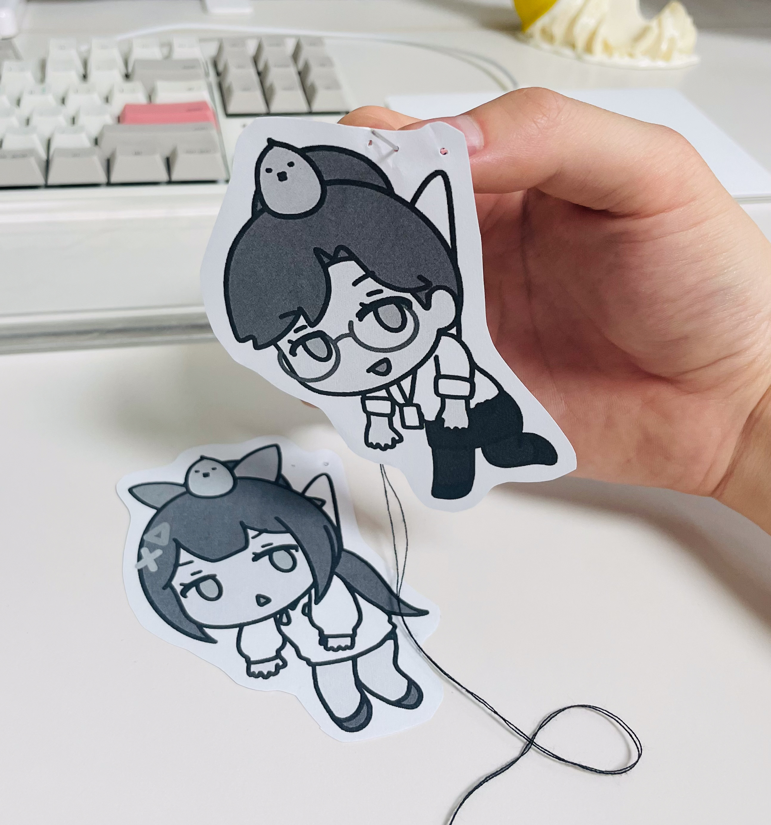 —라고 생각했지만 최근 츠마마레라는 용어를 알게 되었다. 주로 목덜미 옷을 잡혀 매달려 있는 모양의 굿즈를 말하는데, 창작욕이 솟아서 그만 그려버리고 말았다. 이번에 보내지 않으면 내년까지 기다려야 할 상황이라 빠르게 도안을 만들어서 샘플 뽑고 수정해 6월 안에는 완성해야 한다. 갑자기 시간이 촉박해졌다.
