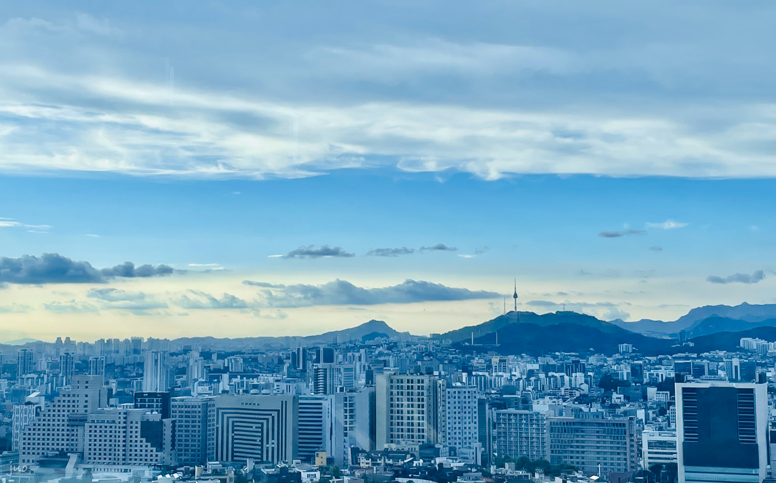 며칠간의 폭우는 공기 중의 이물질도 싹 쓸어버린 모양이다. 사무실에서 창밖을 바라보자 몽글몽글한 구름 아래로 남산 타워는 물론이고 그 뒤의 북한산까지 또렷하게 보였다. 퇴근할 때가 되자 구름이 살짝 걷히면서 햇빛이 건물들을 또렷이 비추고 있었다.