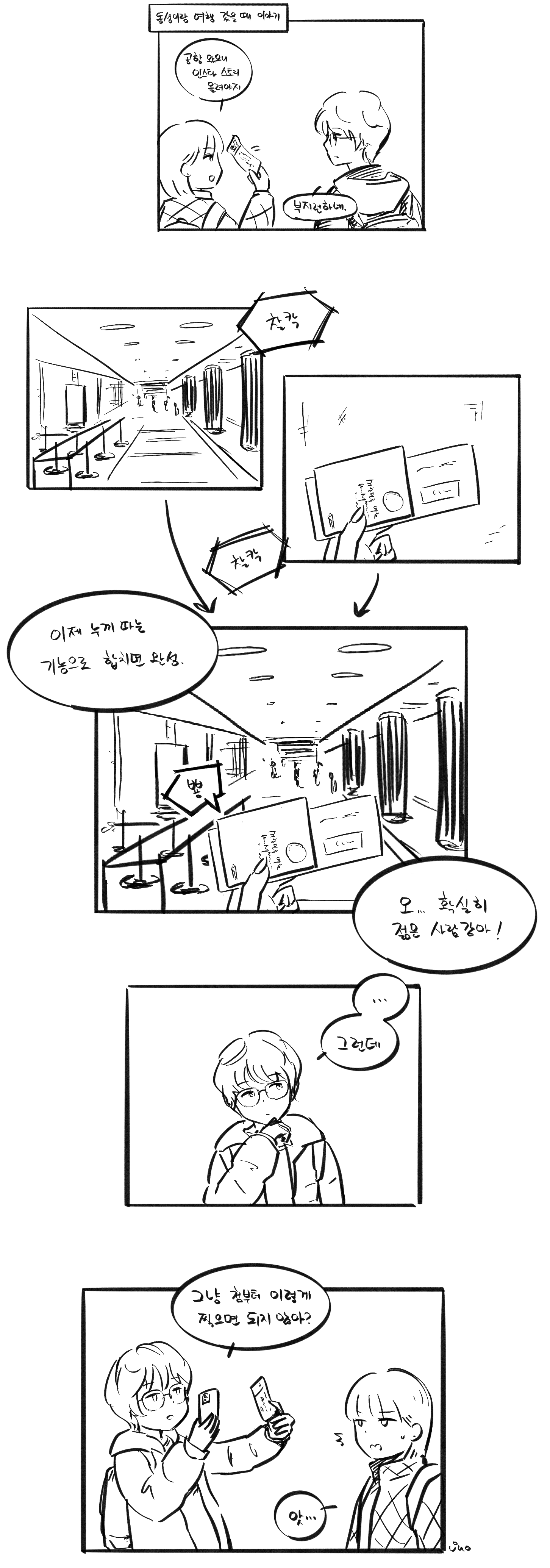 일본여행 갔을 때 공항에서 있었던 일이 생각나서 그려 봤다.