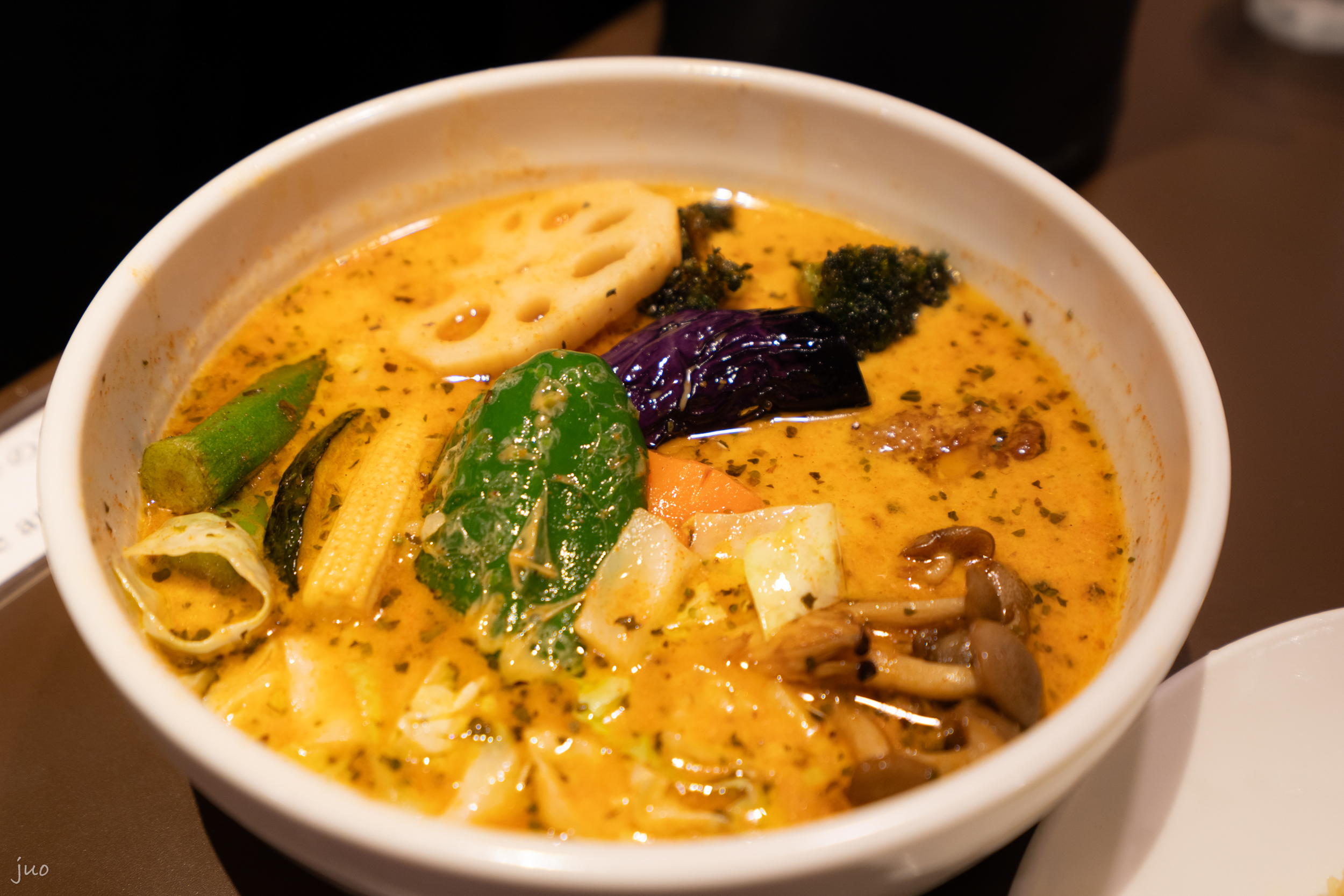 몇 년 전에 갔던 가게와는 다르게 매운맛 단계를 0부터 J, Q, K, Joker까지 선택할 수 있었다. 그래서 스프 카레 “킹”인 건가. 가격 추가 없이 고를 수 있는 제일 매운 단계인 5번을 선택했다. 그 윗 단계는 프릭끼누 고추가 들어가는 듯했다. 막상 먹어 보니 5단계도 신라면 이상으로 매워 다시는 일본인이 매운 걸 못 먹는다고 무시하지 않겠다고 다짐했다. 이건 카레가 아니라 거의 국밥이다.