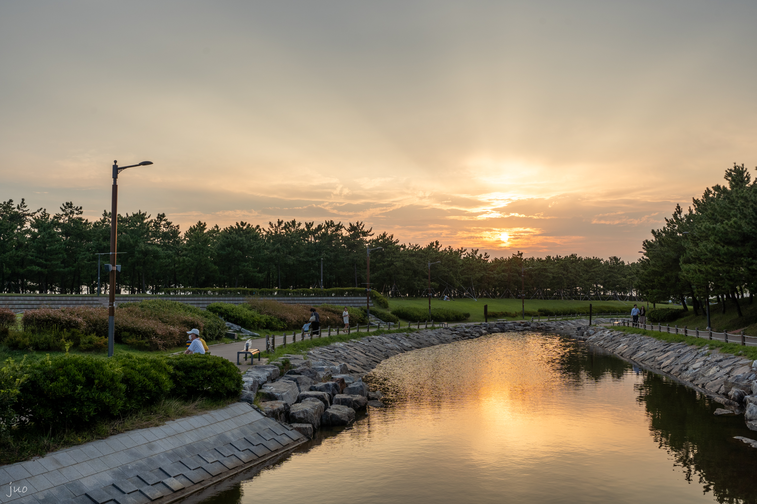 낙조분수 공연이 시작한다길래 자리를 잡았다. 30분 전부터 자리가 차기 시작했다. 담당자가 그 자리는 물이 많이 “튄다”고 하길래 튀어 봐야 얼마나 튀겠어라고 생각하고 그대로 있었다. 하지만 빛과 물의 향연을 즐기다 보니 점점 몸이 젖어갔고 급기야 분수 소나기가 내려 물에 푹 젖은 생쥐 꼴이 되어 외곽으로 도주했다.