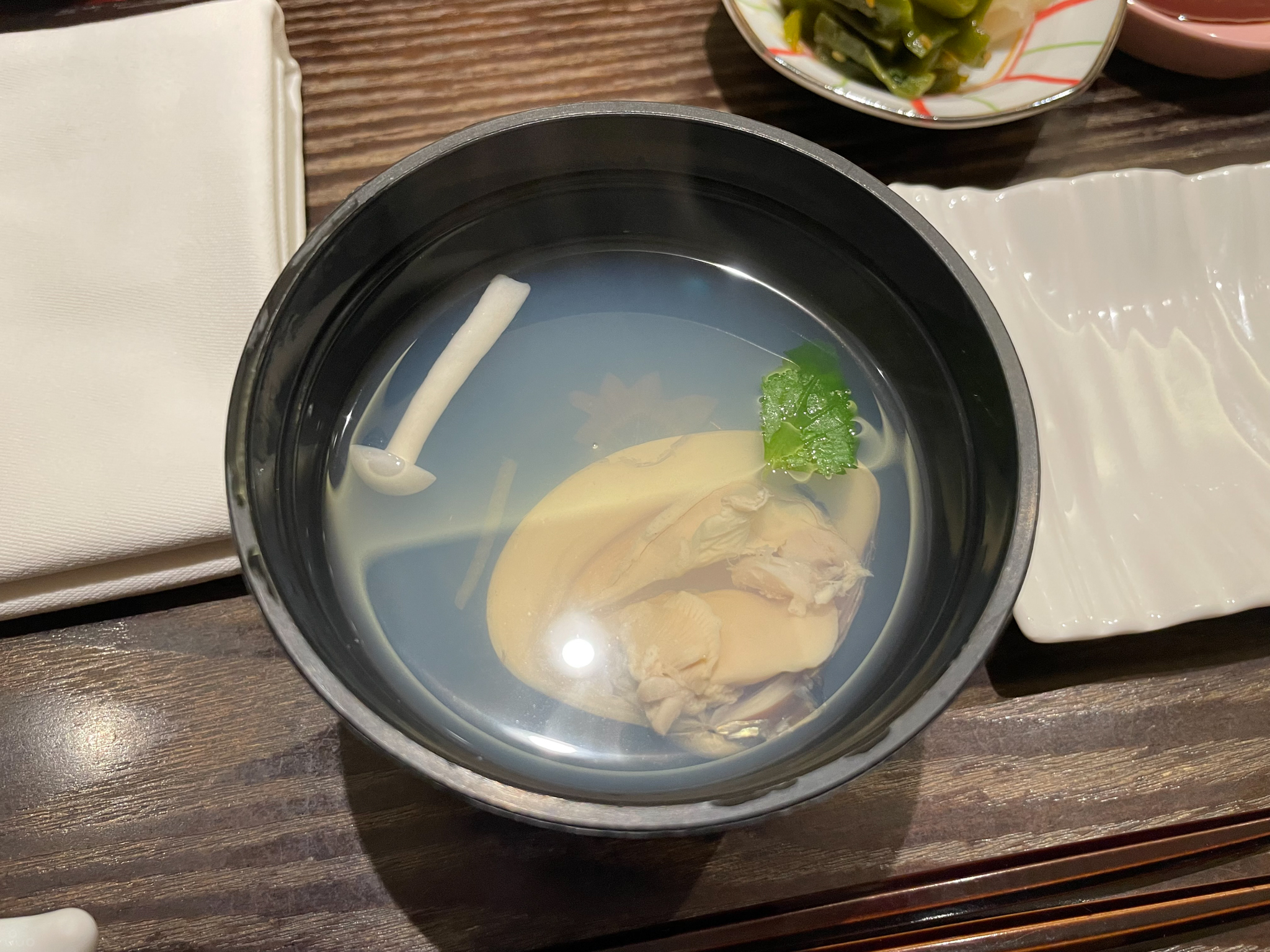 대합이 들어간 스이모노. 이것과 뒤에 나올 꽃게장국은 리필이 가능하다.