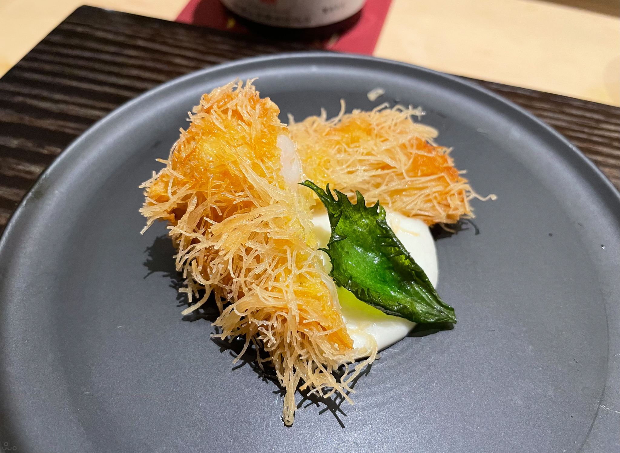 "스시만 드시면 지겨우실까 봐" 새우튀김과 감자 소스. 짜거나 단 맛 등의 간이 강하지는 않고 은은한 느낌이다. 분위기 전환을 위해서라면 조금 더 강해도 좋았을 것 같다.