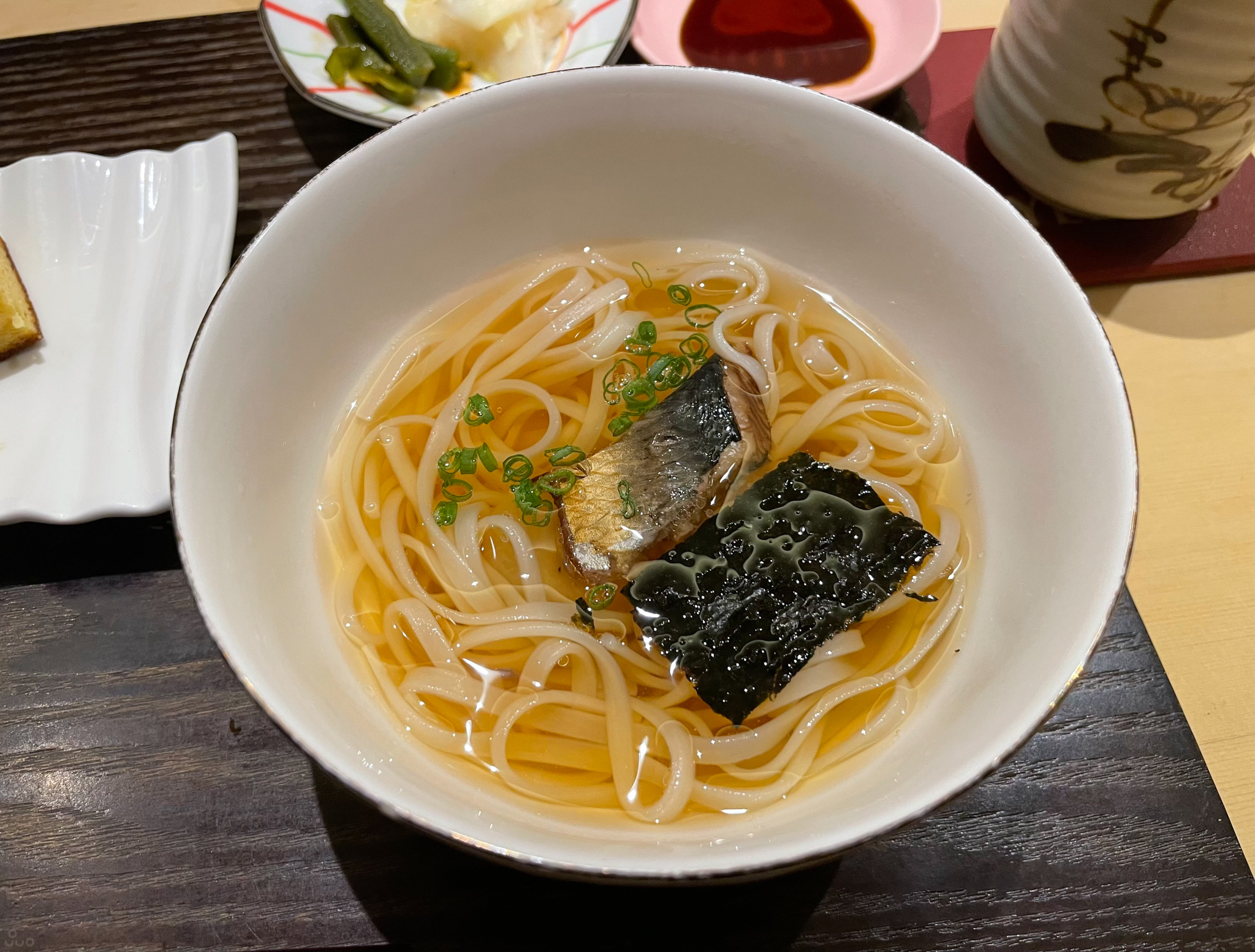 일본 3대 우동 중 하나인 이나니와 우동, 올라간 것은 청어. 가느다랗고 매끈한 비단결 같은 면발이 좋다. 국물은 강하지 않고 은은하게 간이 되었다. 이 집은 간 맞추는 솜씨가 정말 절묘한 듯.