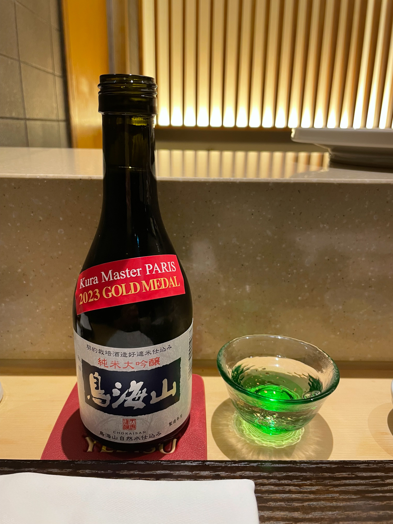 초카이산 준마이다이긴죠, 15도. 탄산이 약간 있어 청량하며 프루티 하다.