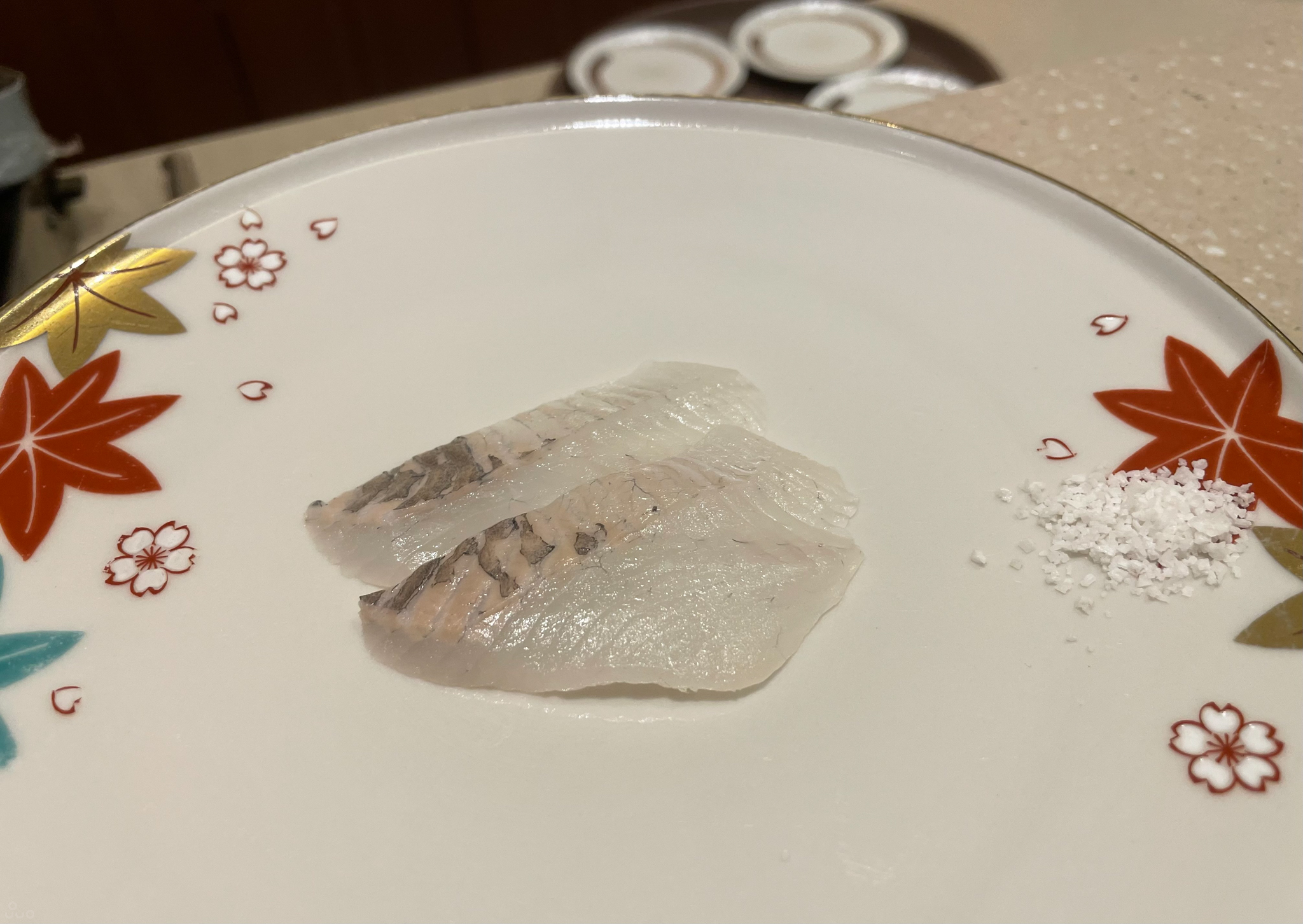다시마 숙성한 능성어. 감칠맛이 끝내줬다. 약하게 간이 되어 있지만 간장에 찍어먹는 편이 나았다.