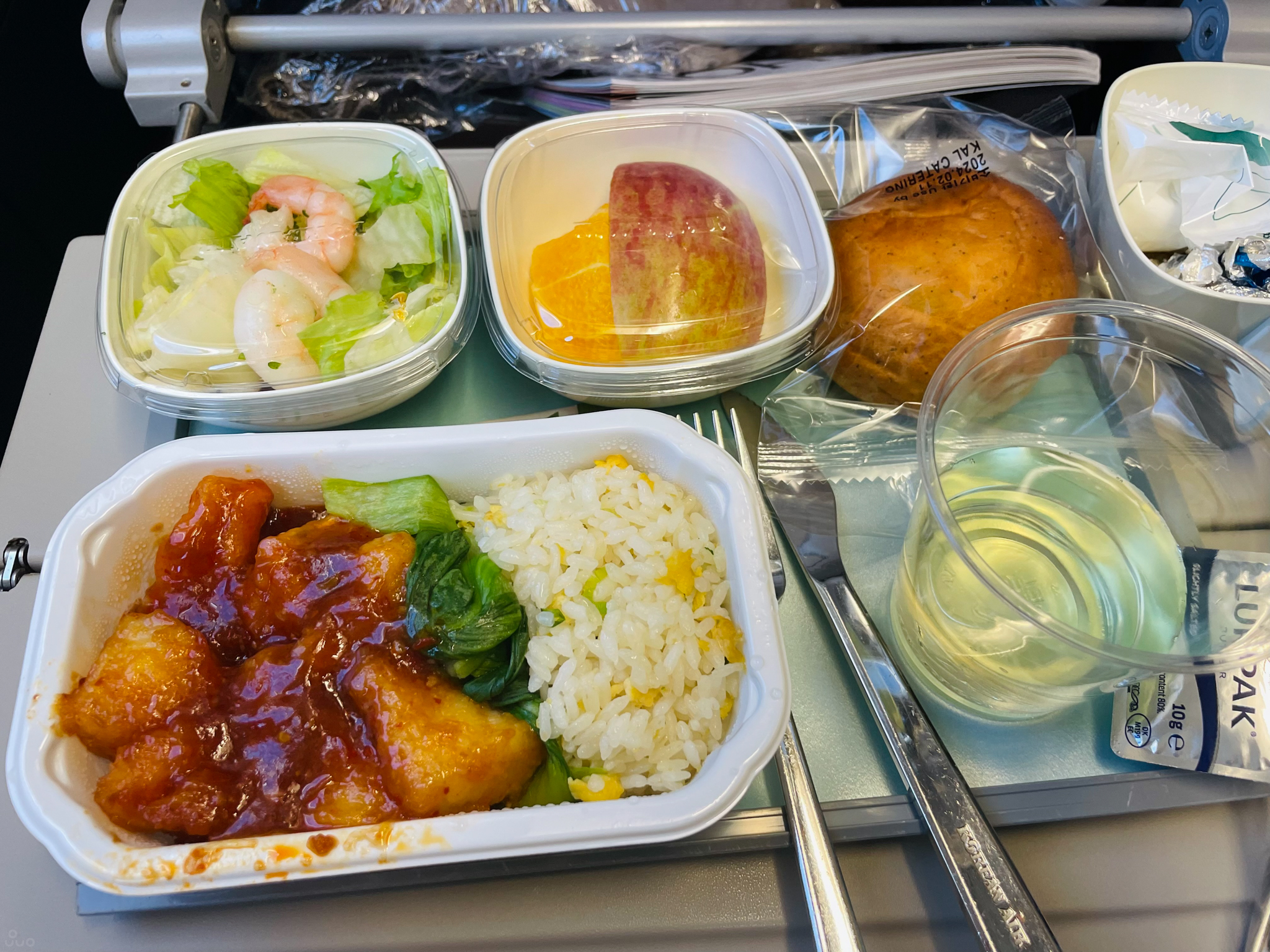 기내식을 비빔밥과 중국식 대구요리 중에 선택할 수 있었는데, 비빔밥은 물론 맛있지만 매번 먹어서 이번엔 대구 요리를 골라 봤다. 약간 코다리 느낌이 난다. 대한항공 맥주가 있었다는데 모르고 와인을 마셔 버렸다. 귀국할 땐 진에어를 타는 일정이라 당분간은 맛볼 일이 없게 생겼다.