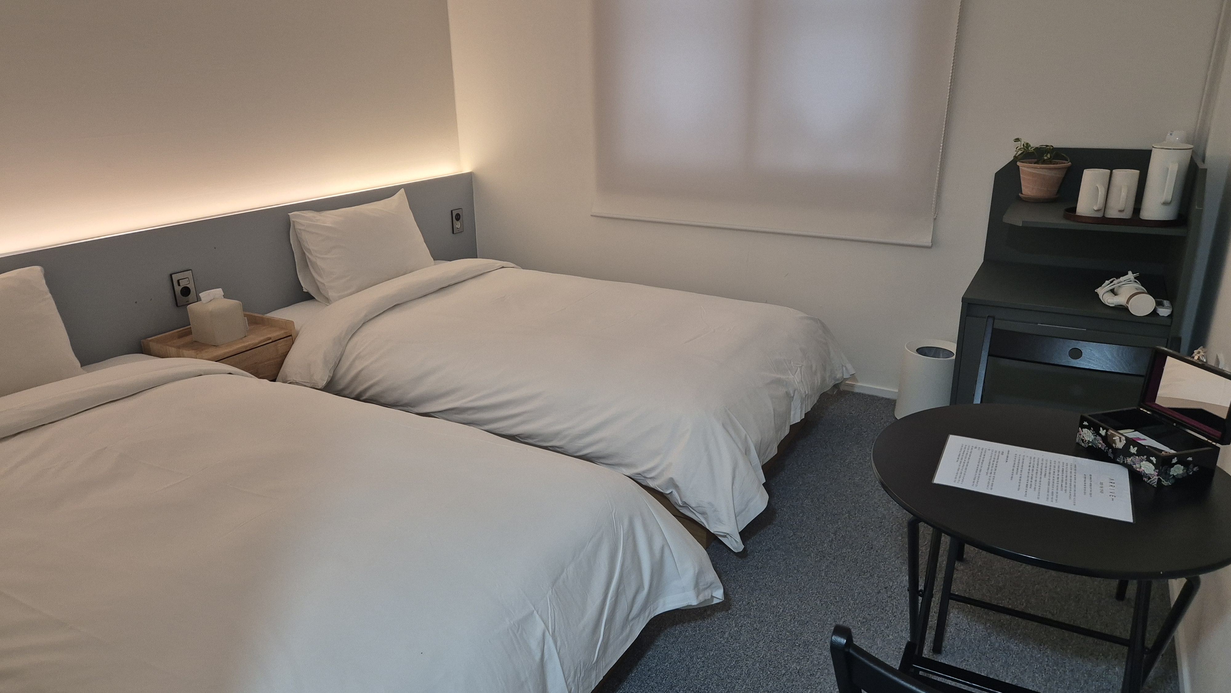 숙소는 시화연풍이라는 곳이다. 전당포 건물을 개조해 만들었다고 한다. 방은 비즈니스 호텔 정도로 그리 넓진 않았지만 딱히 불편한 점은 없었고 크루도 친절했다.
