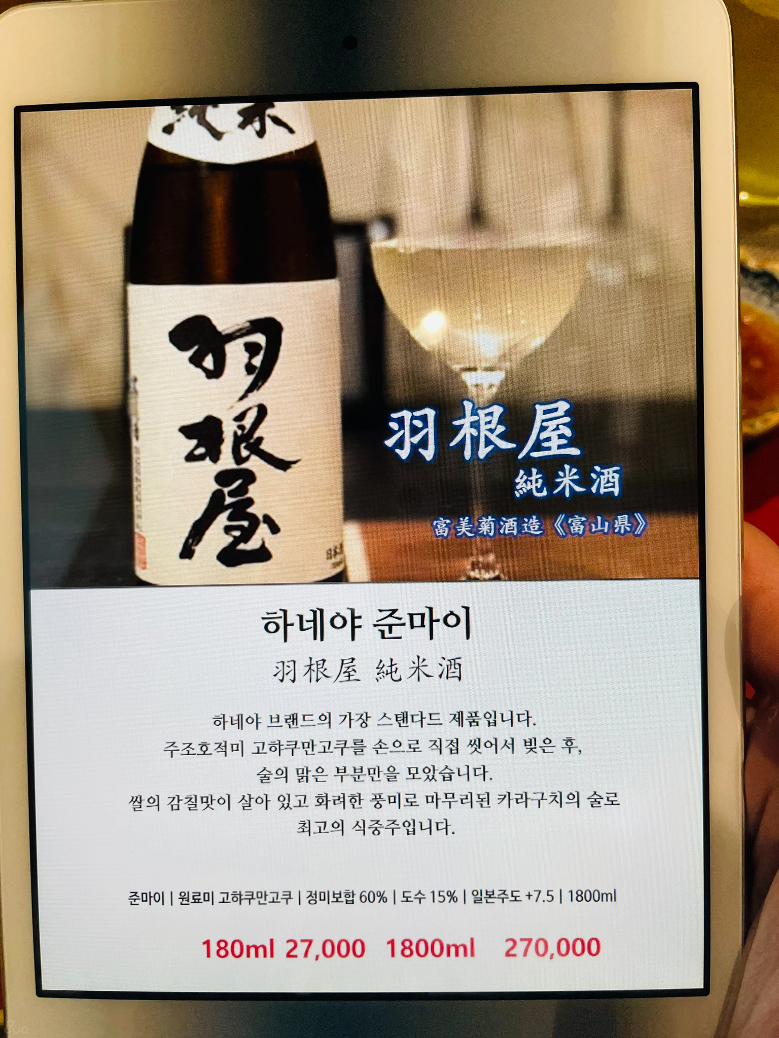 친구는 술을 안 마셔서 작은 용량으로 파는 하네야 준마이를 주문했다.