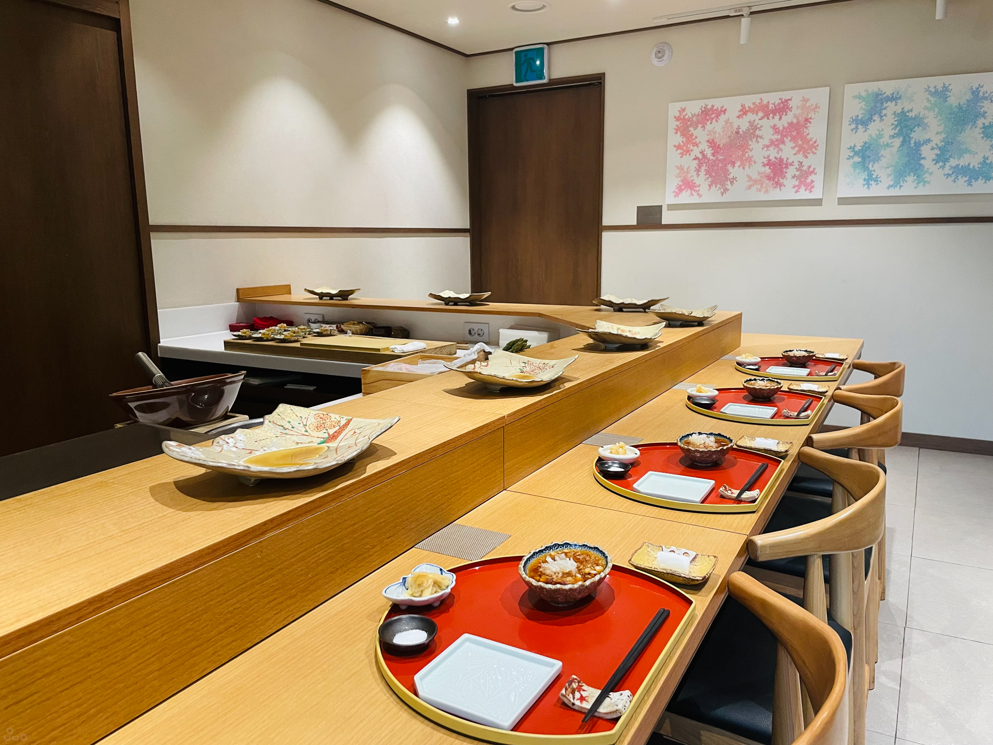 간판을 못 찾아 조금 헤맸지만 일찍 도착했다. 내부는 이렇게 다찌 좌석으로 되어 있다.