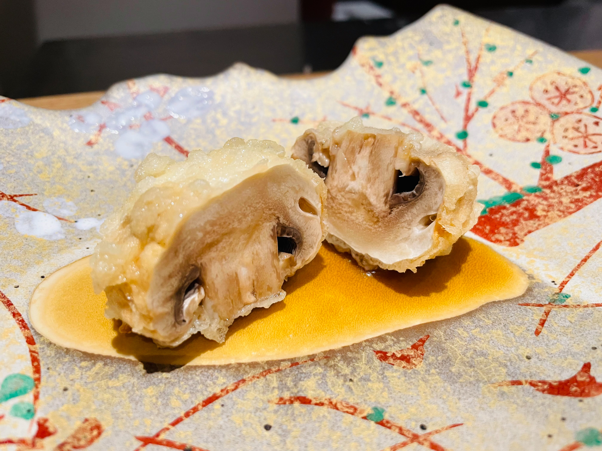표고버섯 안에 새우살을 채운 것. 표고버섯이 매우 탄력이 있다. 그래선지 아쉽게도 새우살의 존재감이 좀 약했다.