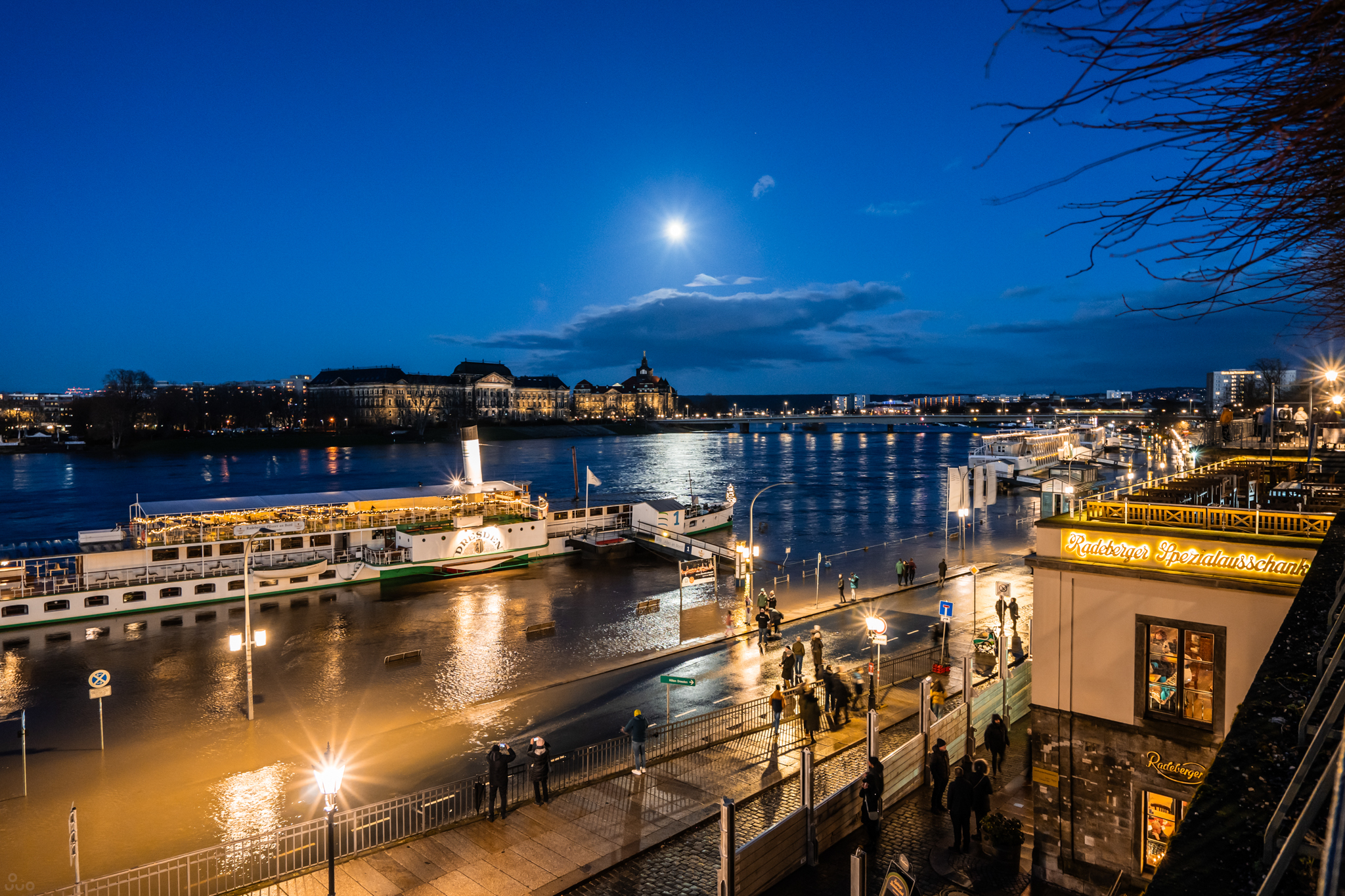 아우구스투스 다리 옆의 노을 맛집이란 곳에 갔다. 노을을 볼 시간은 이미 훨씬 전에 지나갔고 구름과 달이 보였다.