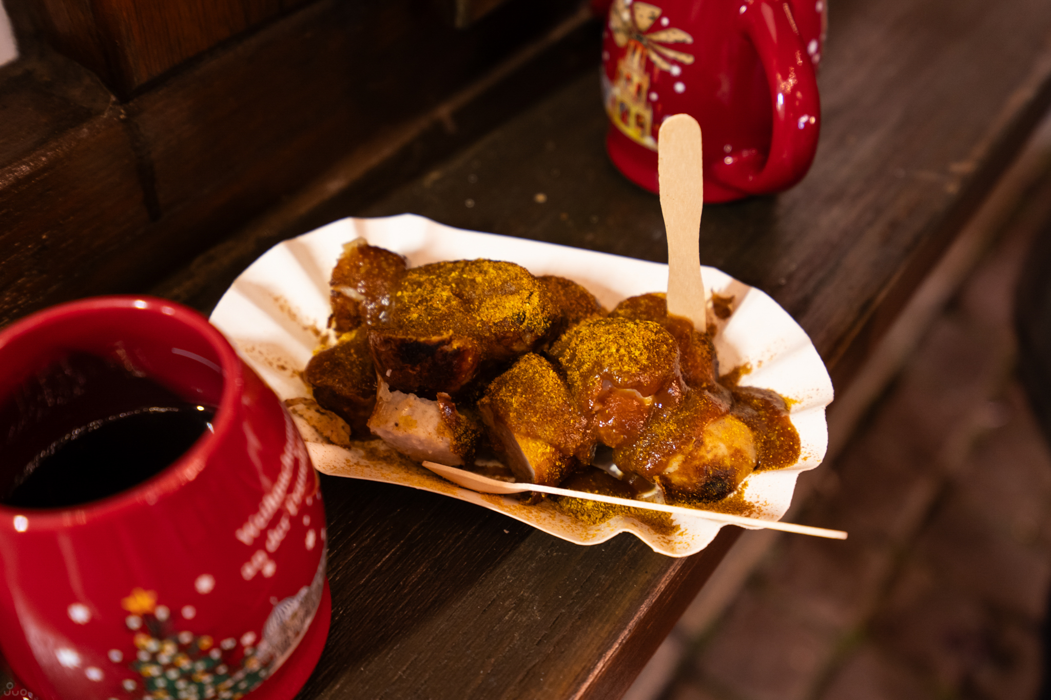 다리를 건너 아우구스투스 광장까지 갔다 돌아왔다. 노점을 그냥 지나치긴 아쉬우니 커리부어스트, 글뤼바인을 사 왔다.