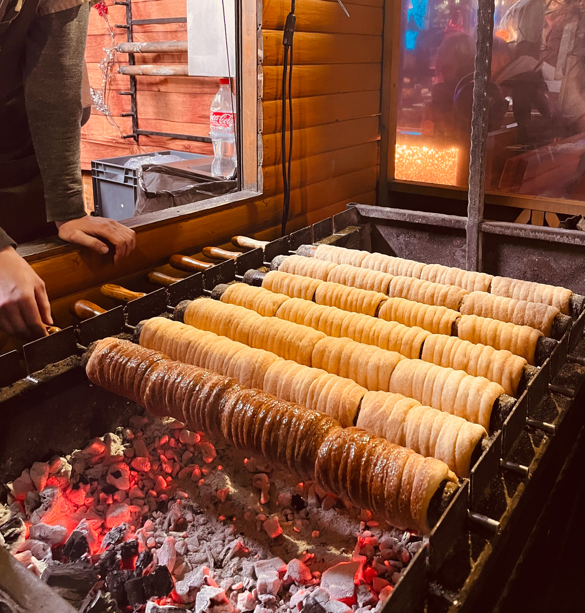 사람들이 들고 다니던 트르델니크도 맛이 궁금해서 배불렀지만 시도해 봤다. 즉석에서 숯으로 굽는데 참을 수가 있어야지. 설탕, 계피가 발렸고 맛은 평범했다.