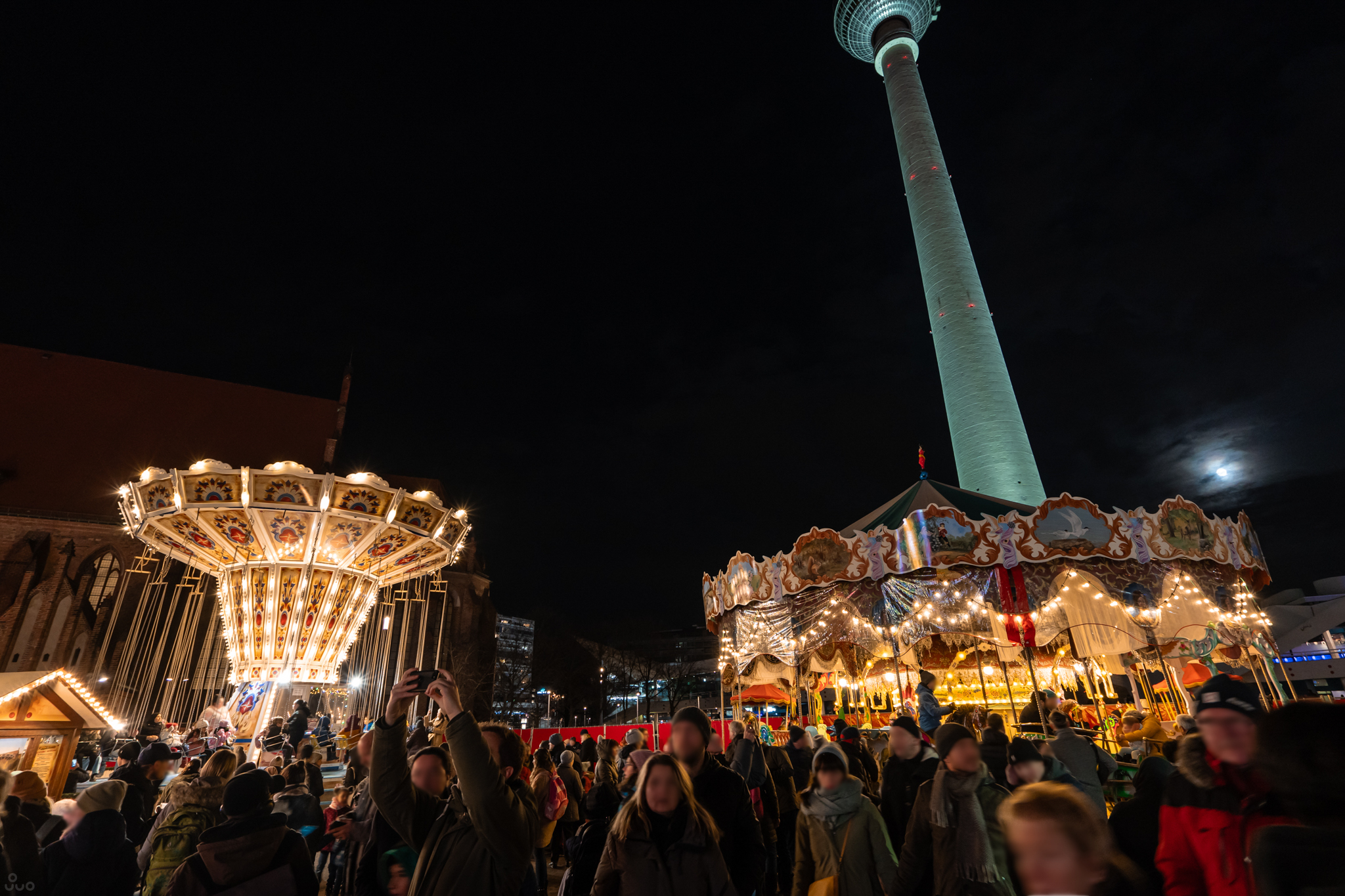 돌아오는 길에 메르세데스 벤츠 아레나를 구경하고 텔레비전 탑 앞의 크리스마스 마켓으로 왔다. 대도시답게 번쩍번쩍한 놀이기구가 있었다. 글뤼바인 한 잔, 달걀이 들어간 술을 한 잔 먹었다. 도시를 돌며 컵을 모으는 재미가 있다. 마지막일 것 같아 기념품을 잔뜩 샀다.