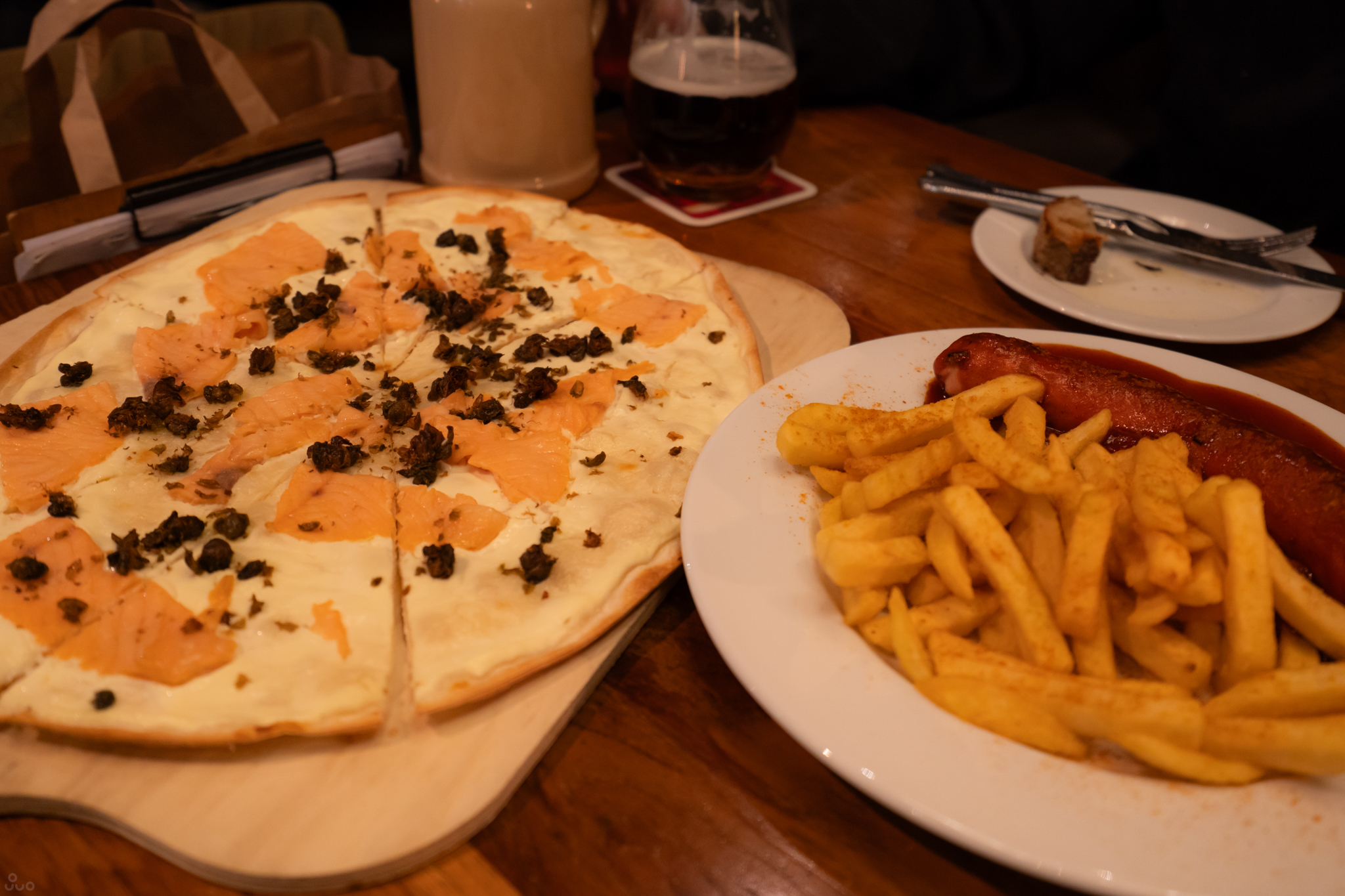 그동안 이상하게 잘 보이지 않던 한국인들을 봤다. 교환학생 같아 보였다. 배가 불러 간단히 피자와 커리부어스트 정도만 시켰다. 맥주는 물론 기본이다. 조금 짰지만 그래서 맥주와 먹기에 아주 안성맞춤이었다.