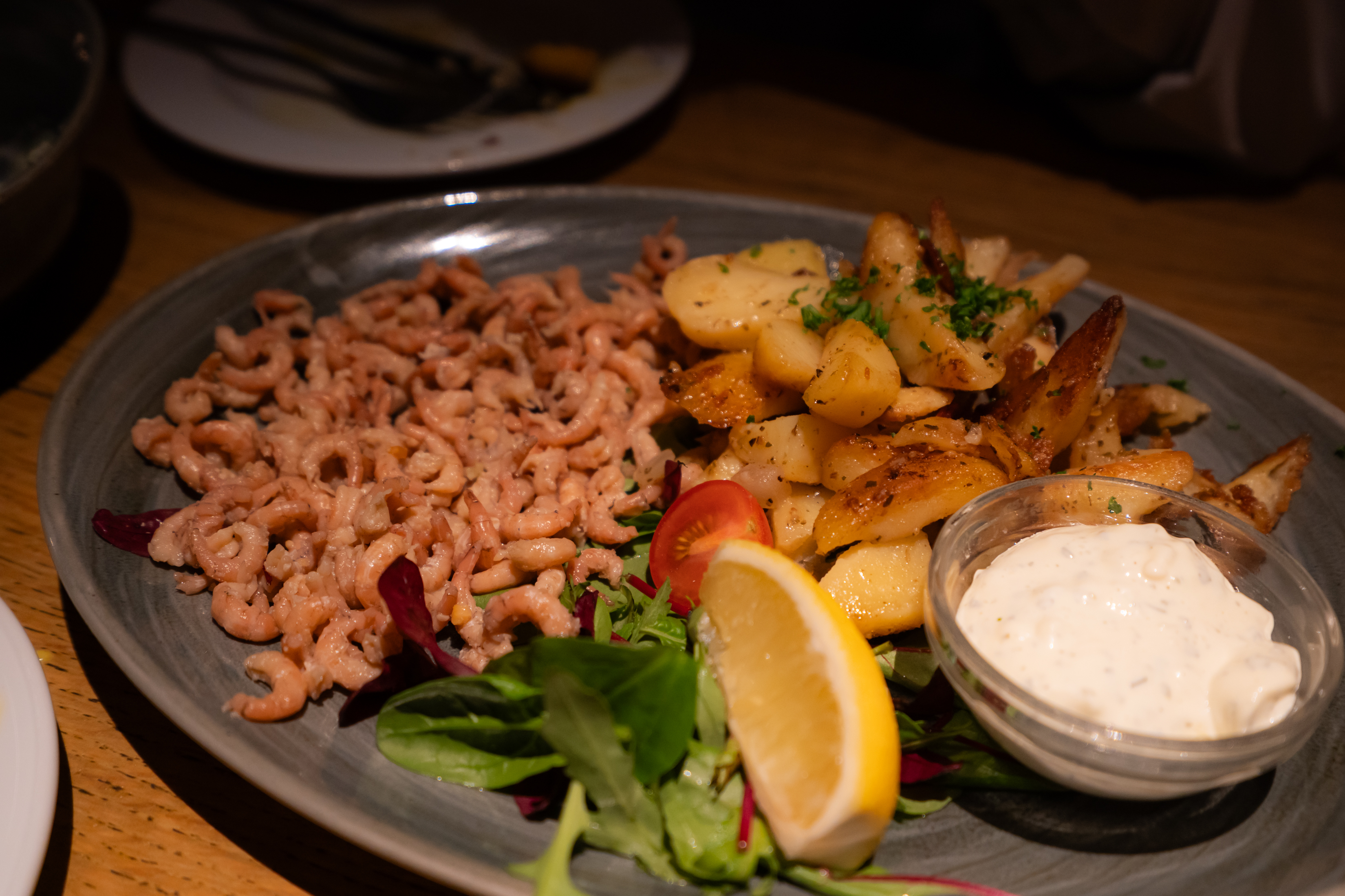 새우 요리도 궁금해서 주문해 봤는데 한국이었으면 새우깡으로 나올 법한 크기의 자잘한 새우를 삶아서 차갑게 낸다. 찾아보니 북해새우라고 한다. 살짝 비렸지만 못 먹을 맛은 아니었다.