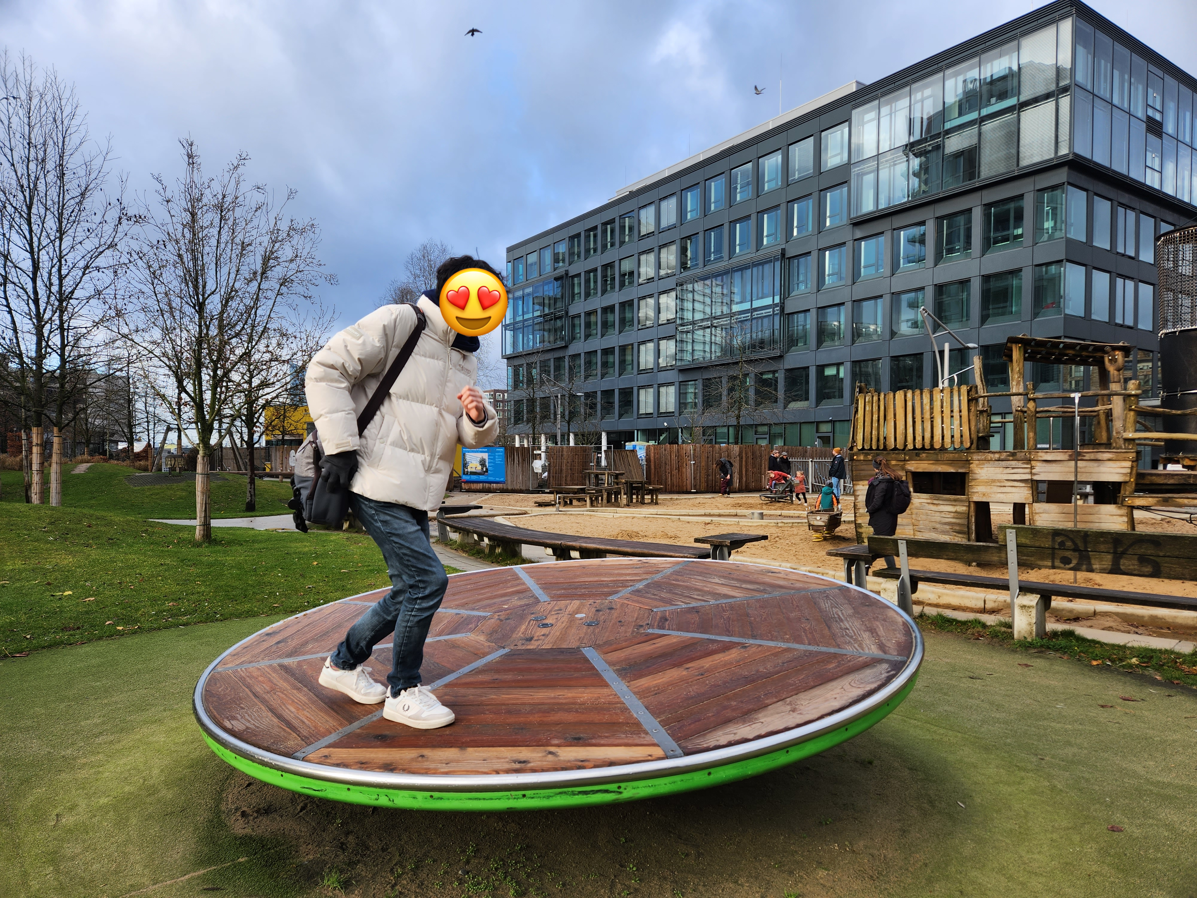 하펜시티 산책을 하면서 벽을 타 보기도 하고, 금방이라도 한쪽으로 무너질 것 같은 저 아슬아슬한 건물은 대체 어떻게 하중을 지탱하는지 대해 토론하기도 하고 놀이터에도 가 보았다.