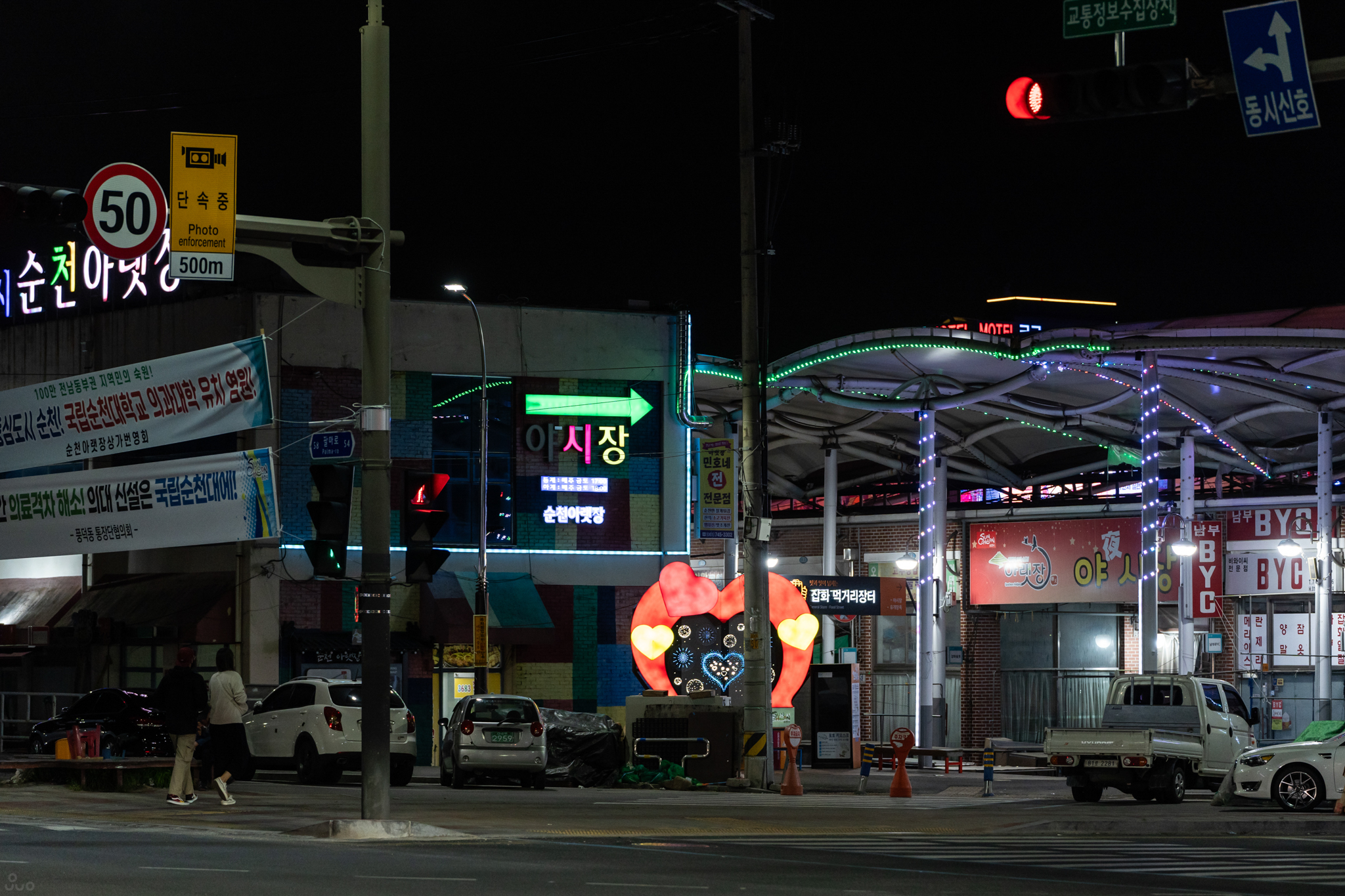 광활한 순천만 국가정원을 돌아다니다 보니 시간이 생각보다 늦어져 9시 정도에 야시장에 도착했다. 10시에 닫는다곤 했는데 설마 벌써 끝났나 싶어 헐레벌떡 뛰어갔다. 노랫소리가 들린다. 공연이 한창 진행 중이었다.