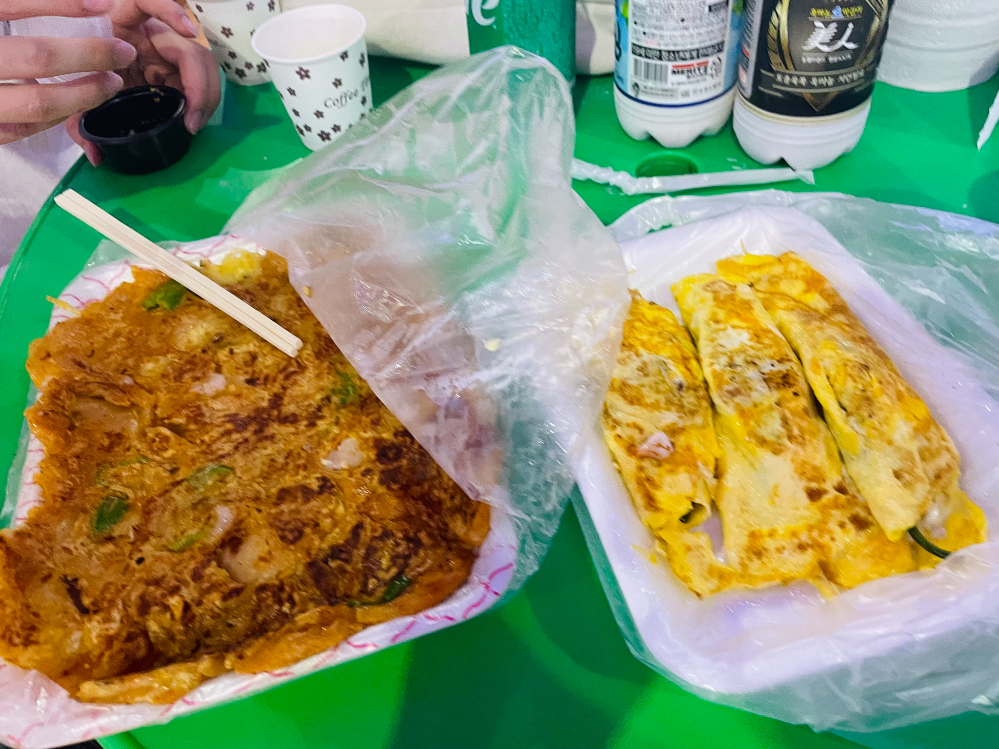 곧 쫓겨날 것 같은 압박이 느껴져 허겁지겁 먹다 우리가 전을 주문한 곳의 테이블로 옮겨앉아—이럴 거면 처음부터 여기 앉아서 먹을걸— 빠르게 다 먹고 자리를 떴다.