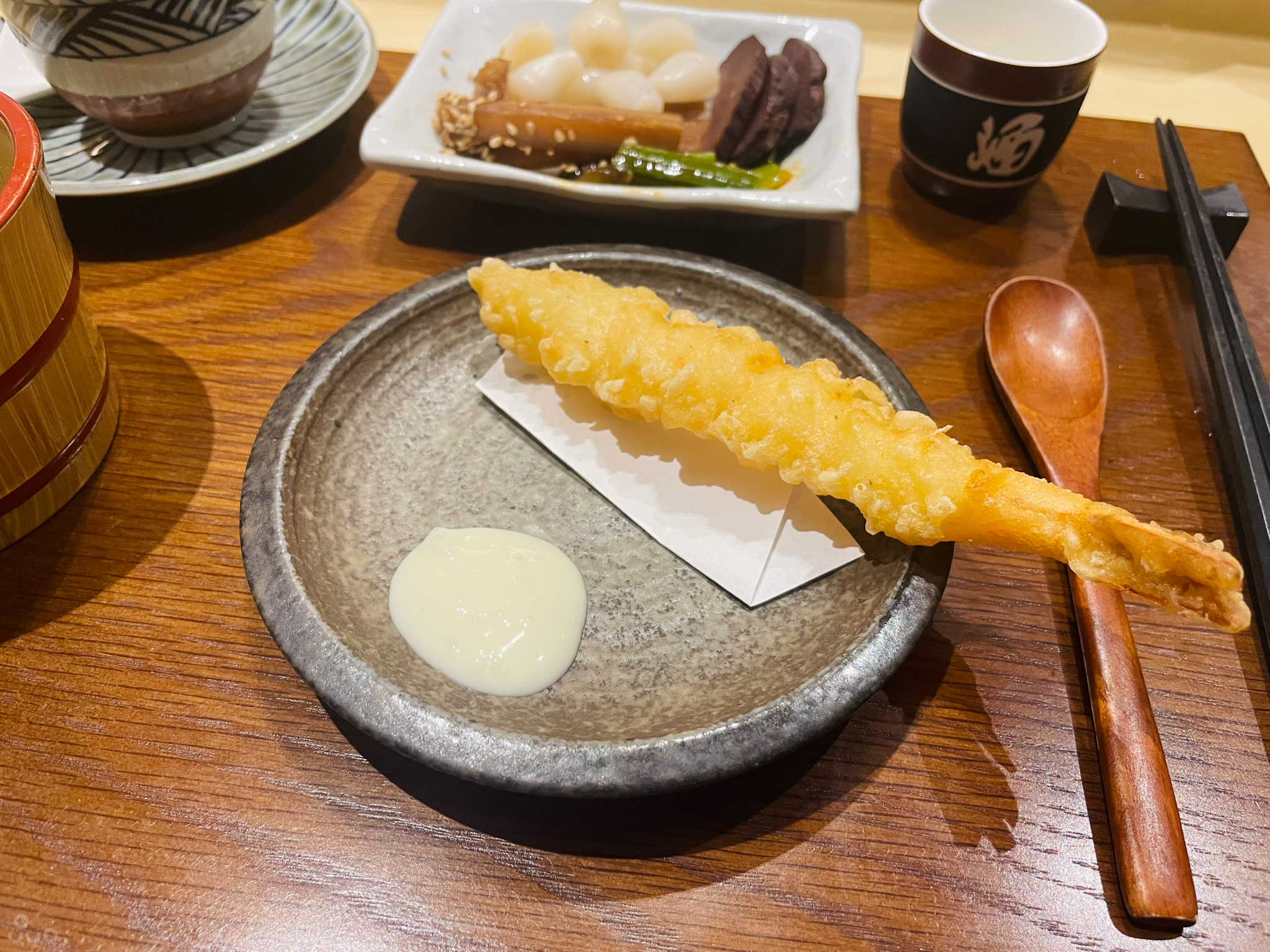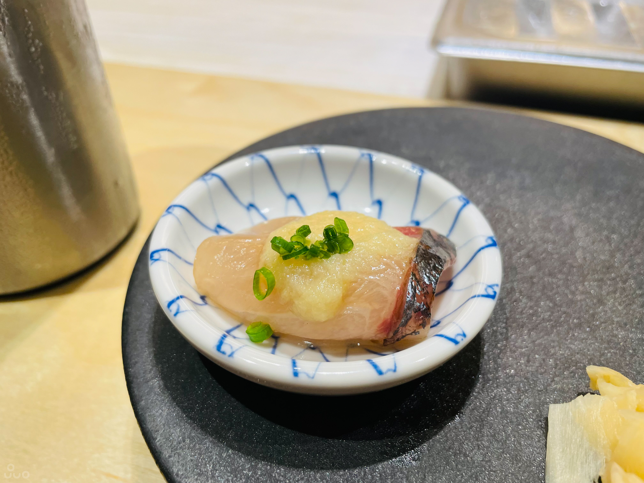 식사 우동: 이것도 위에서 나온 바지락 도미국물과 비슷하게 간이 약하고 깔끔했다. 개인적으론 좀더 강했으면 했다. 면이 얇은 걸로 보아 이나니와 우동을 쓰시는 듯.
