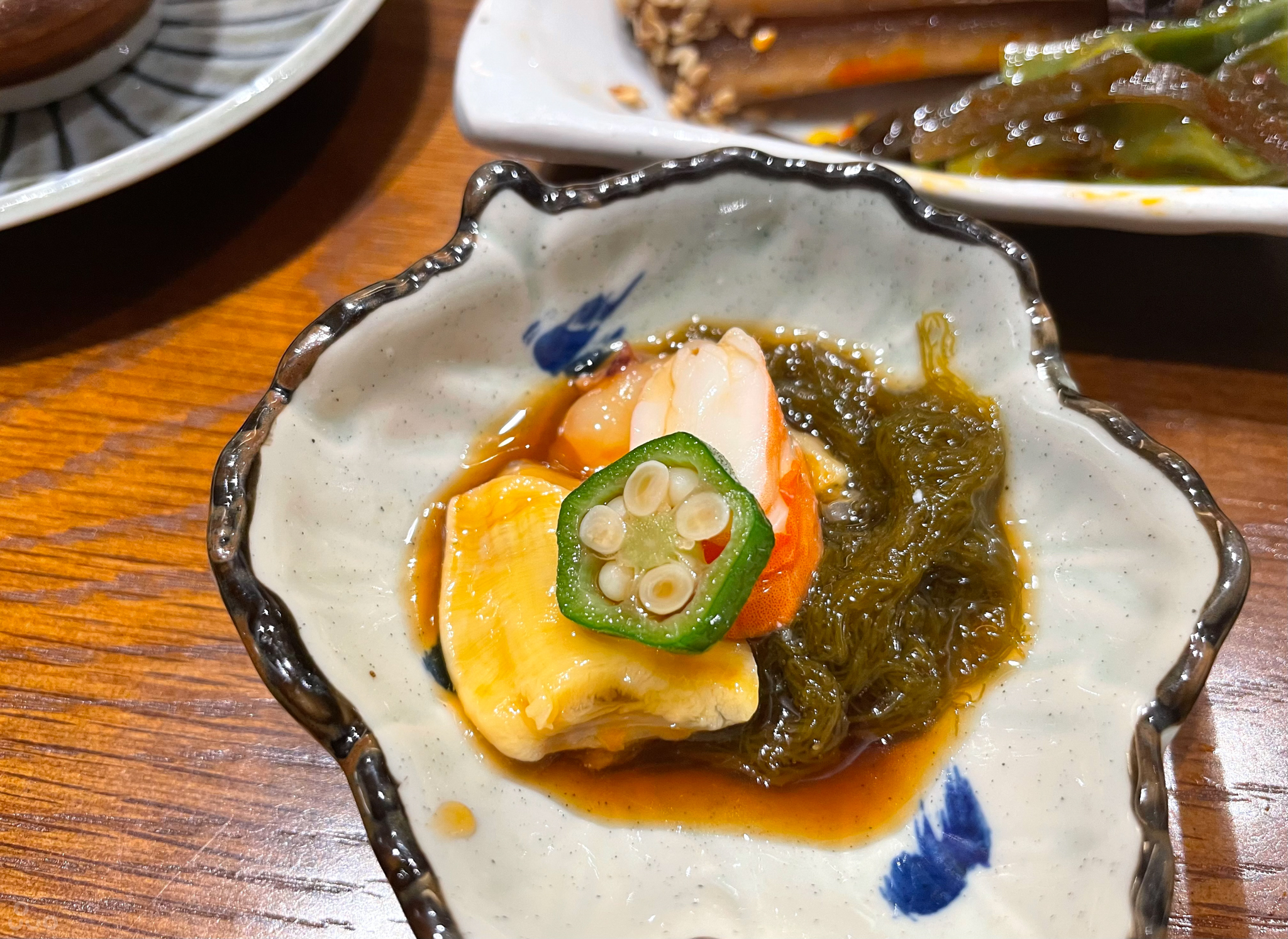 조금은 생소한 해조류인 모즈쿠, 멍게, 오크라, 게살.