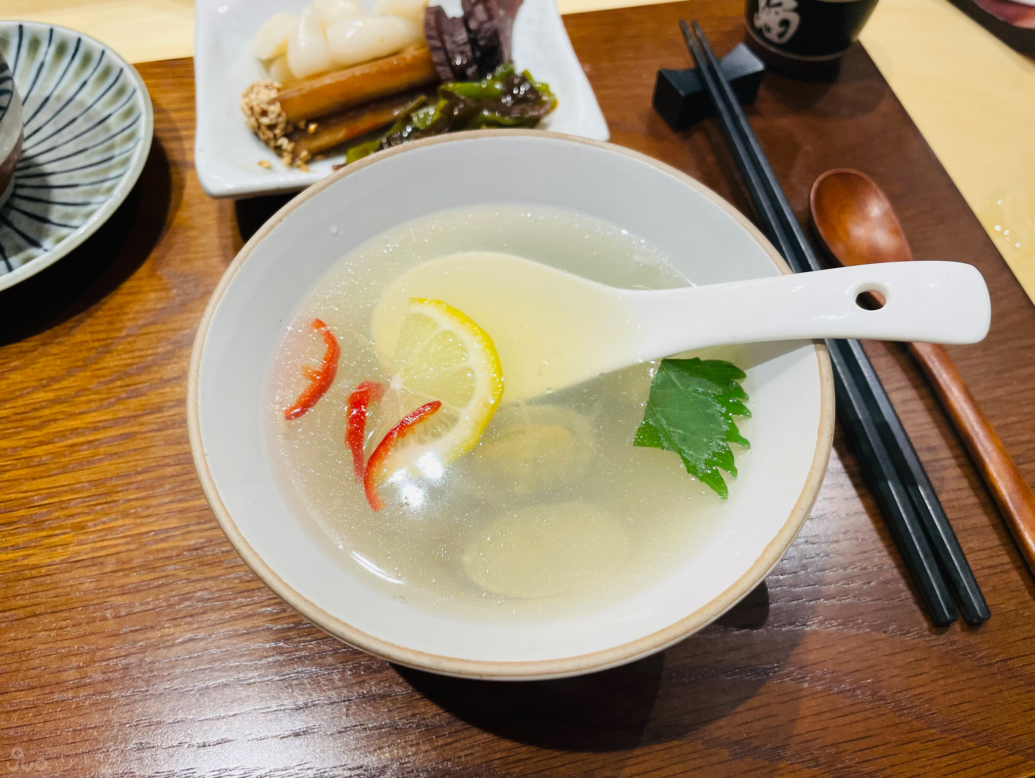 생강 향인지 고추 레몬 향인지 잘 모르겠지만(일반인에게 뭘 바라나) 알싸하게 맵다. 잠깐 쉬어가라는 의미에서 간을 깔끔하고 약하게 하신 것 같다.