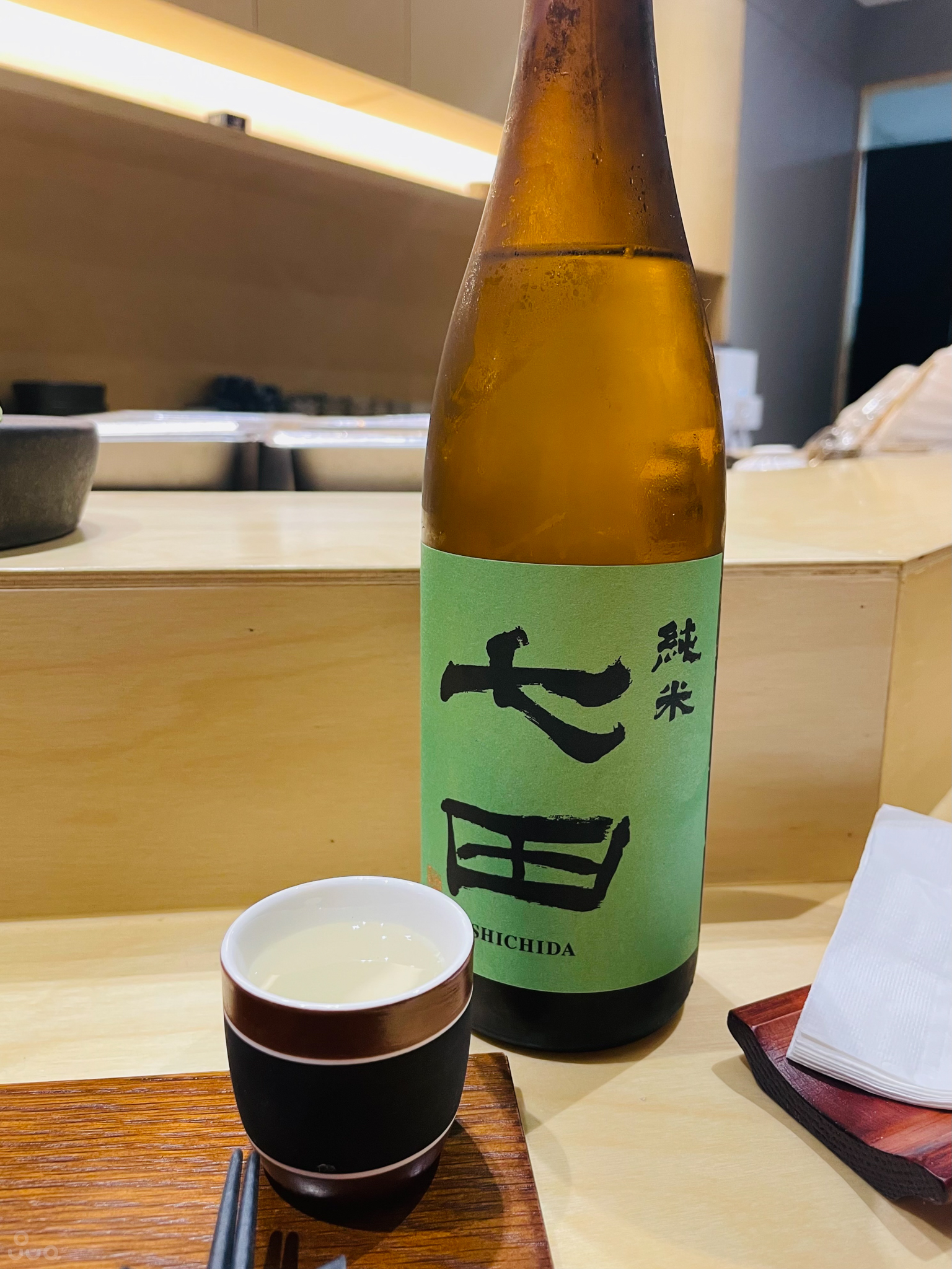원래 미슐랭 3스타 집에서 나온다는 비싼 사케를 마시려 했으나 재고가 없다고 하셨다. 사장님 본인 평으론 맛도 그다지 좋은 것 같지 않다고. 좀 더 저렴한 시치다 준마이 65를 주문했다.